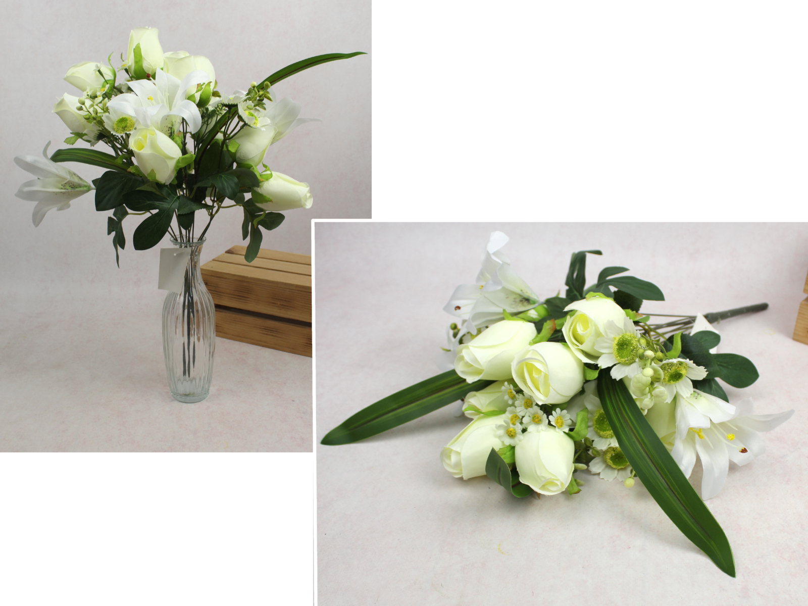 Bukiet RÓŻA, LILIA wys. 49 cm, 10 łodyg  (14 kwiatów 12-5 cm) ŚMIETANOWA