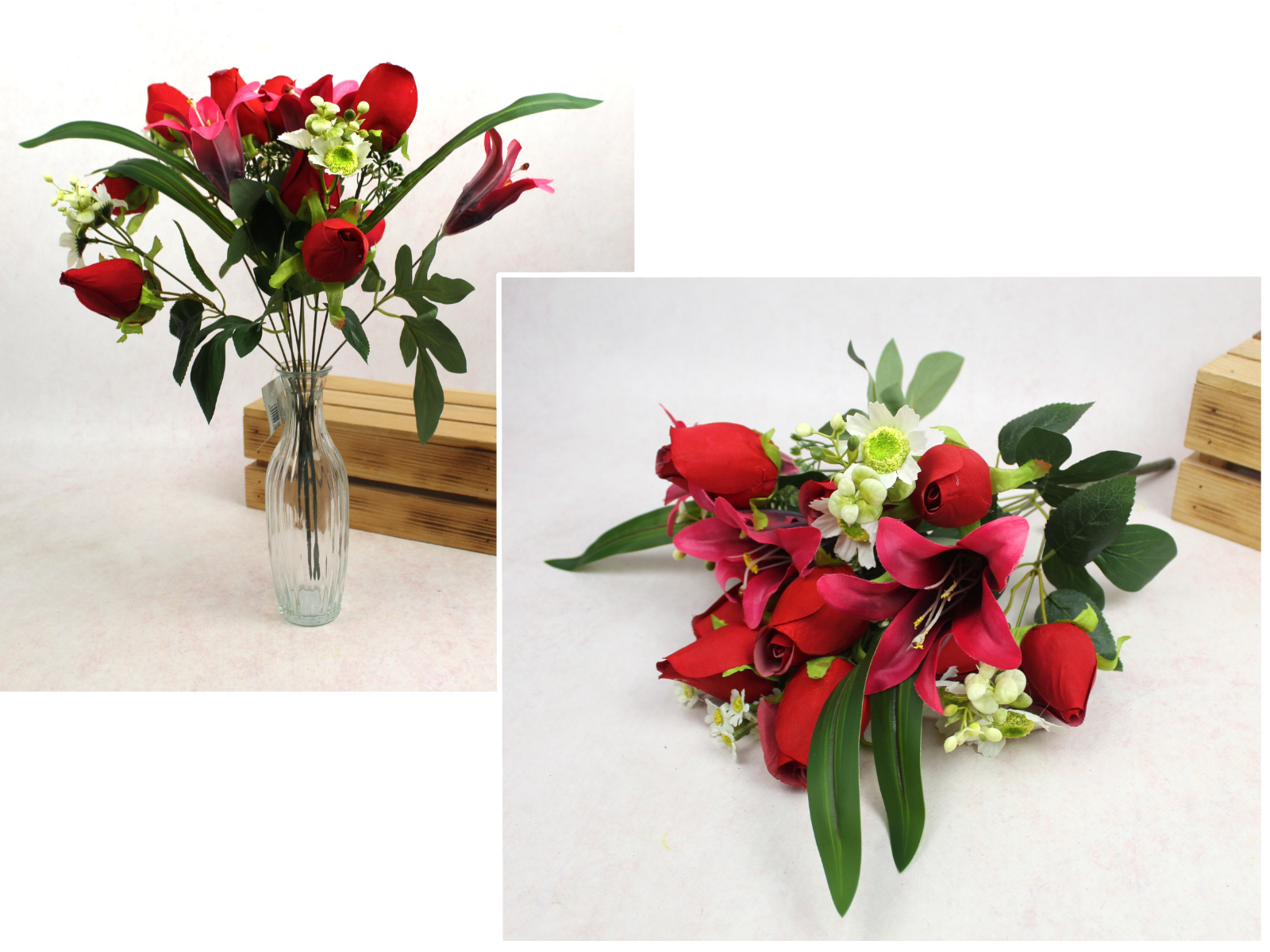 Bukiet RÓŻA, LILIA wys. 49 cm, 10 łodyg  (14 kwiatów 12-5 cm) CZERWONA