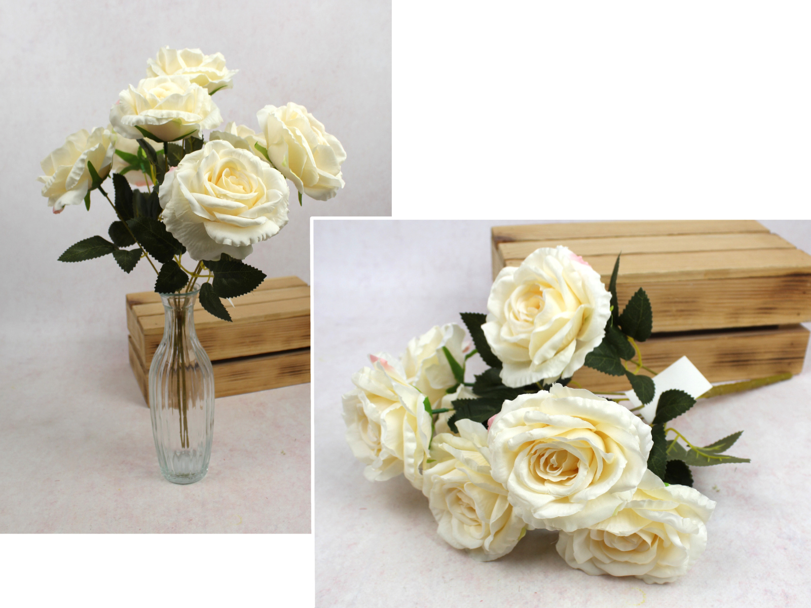 Bukiet RÓŻA wys. 44 cm, 7 łodyg (7 kwiatów 10x5 cm) ŚMIETANOWA cieniowana