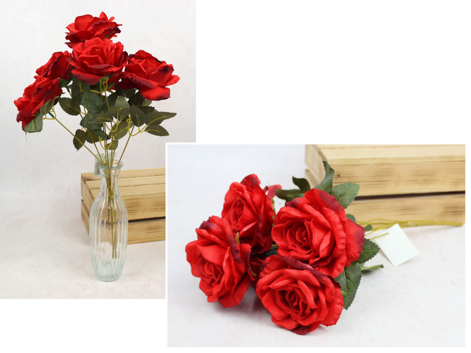 Bukiet RÓŻA wys. 44 cm, 7 łodyg (7 kwiatów 10x5 cm) CZERWONA