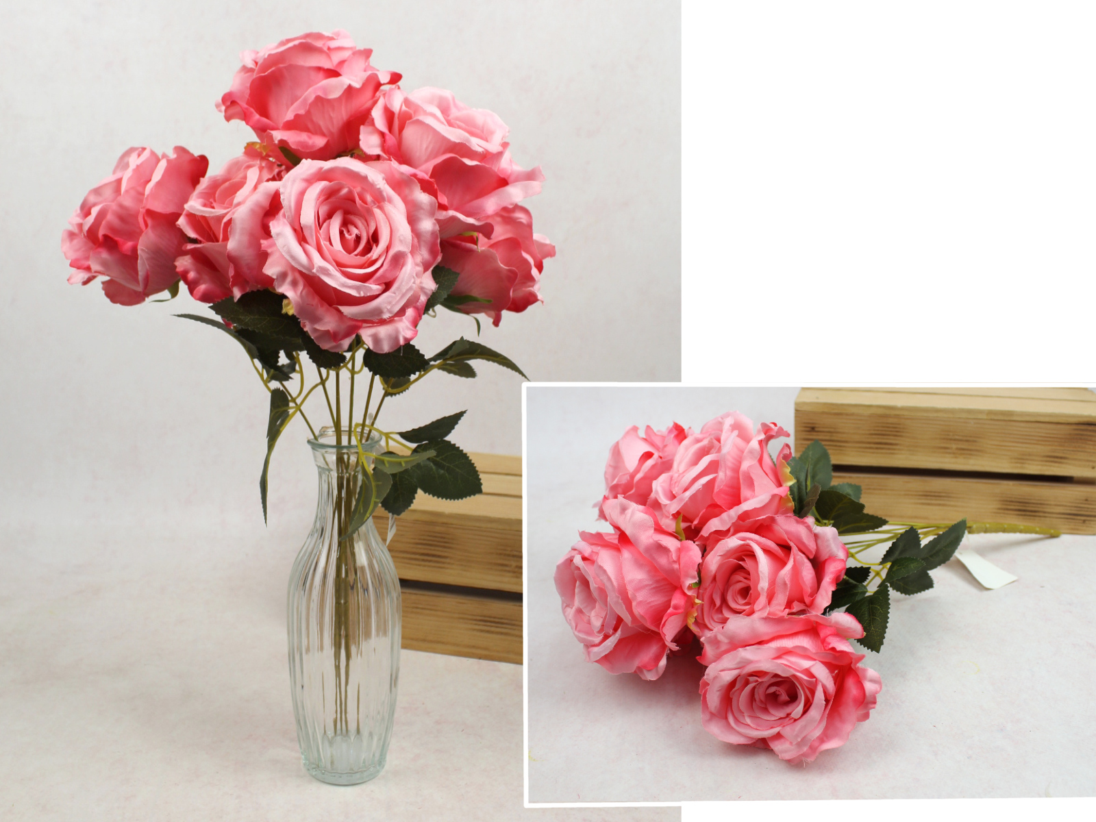 Bukiet RÓŻA wys. 45 cm, 7 łodyg (7 kwiatów 9x7 cm) RÓŻOWA