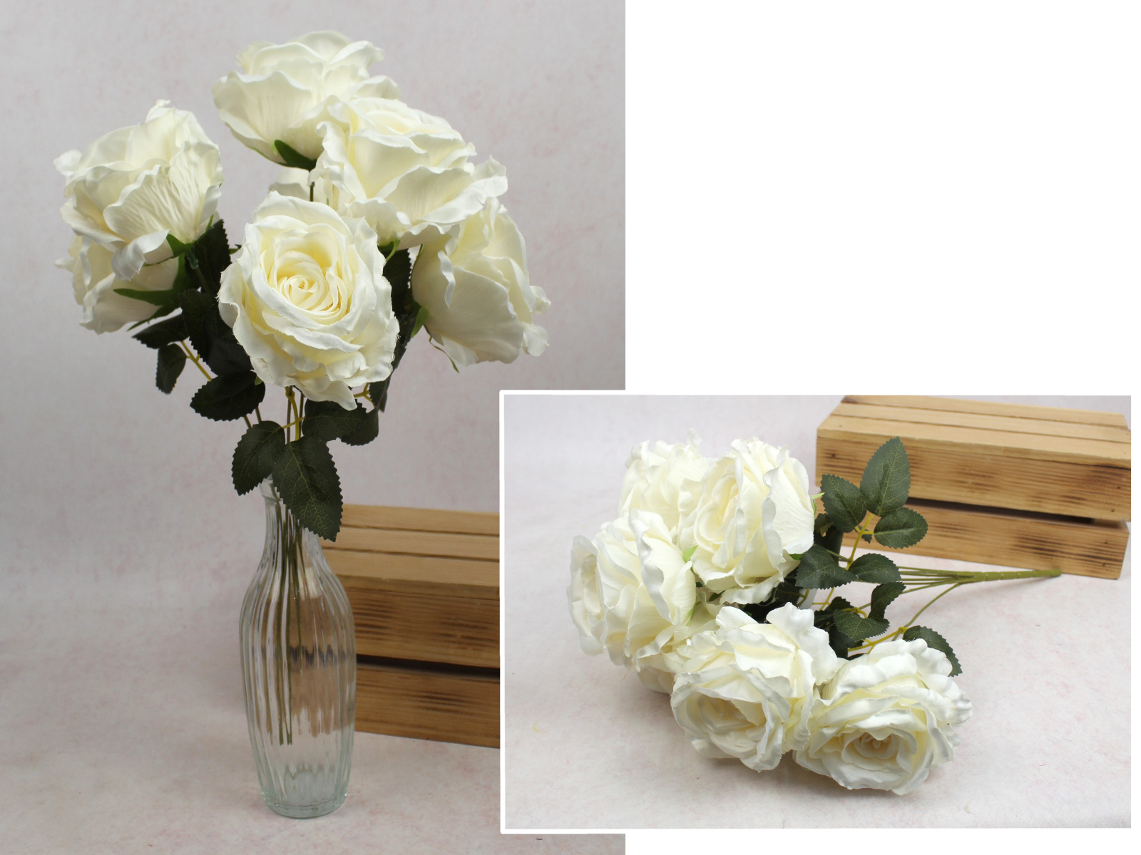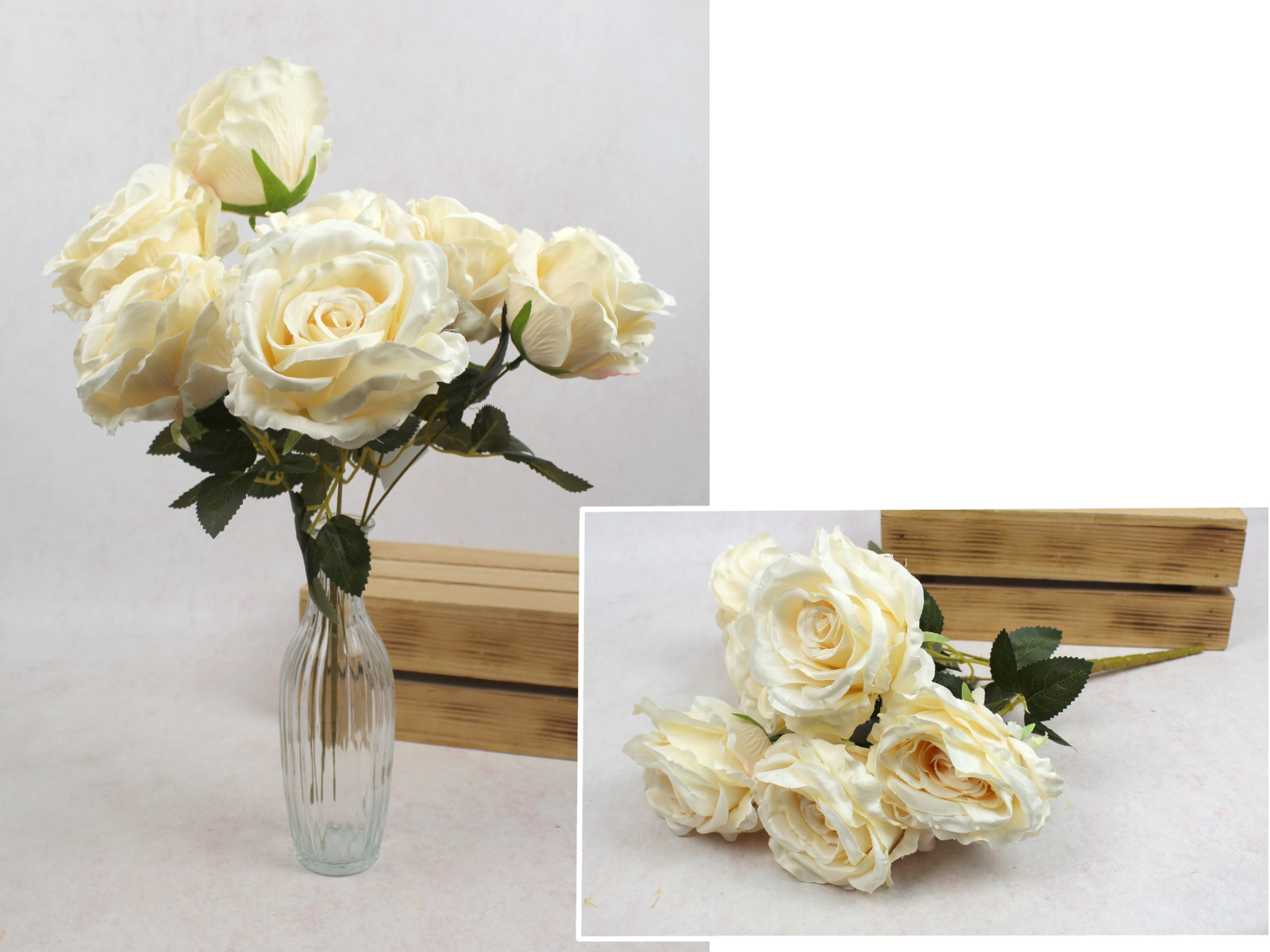 Bukiet RÓŻA wys. 45 cm, 7 łodyg (7 kwiatów 9x7 cm) ECRU