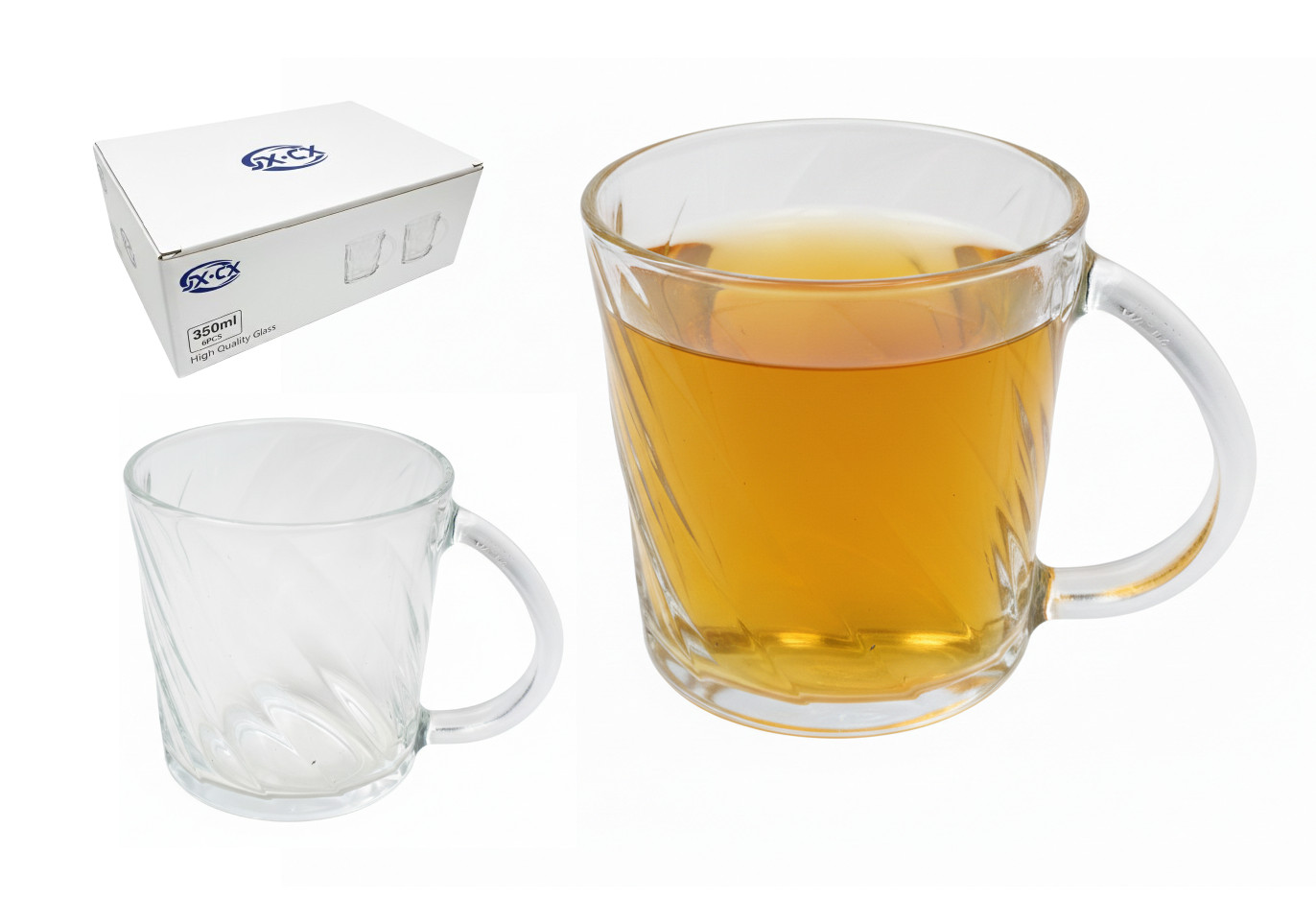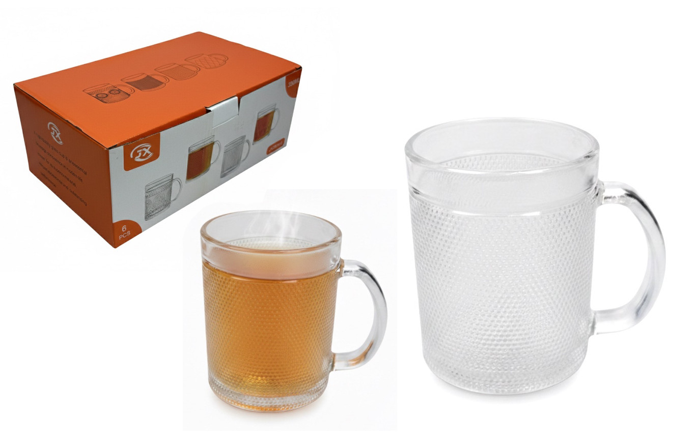 Kubek szklanka z uchem romby 10x8 cm 330 ml kpl. 6 szt