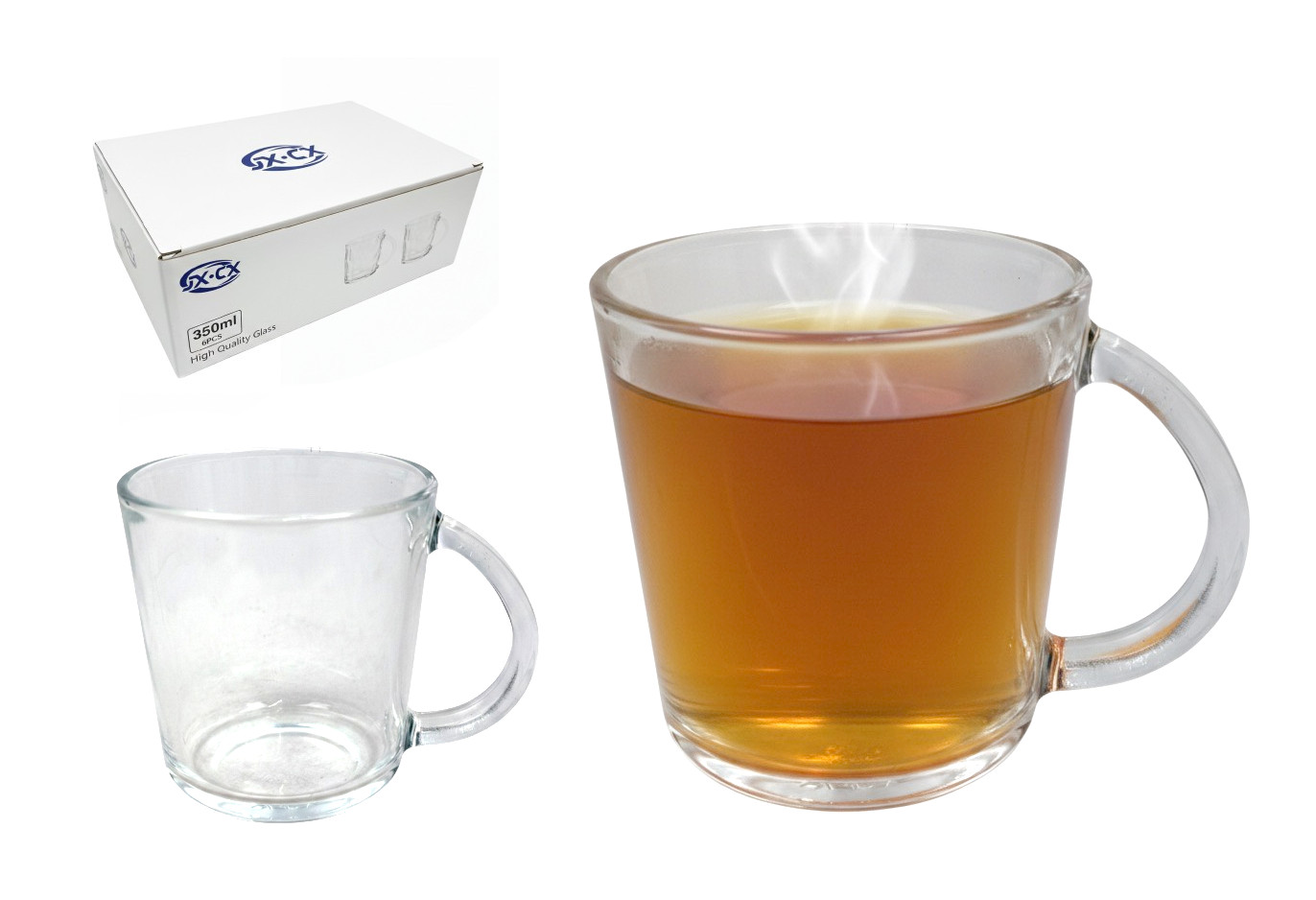 Kubek szklanka z uchem 9,5x9 cm - 1 szt 350 ml GŁADKA