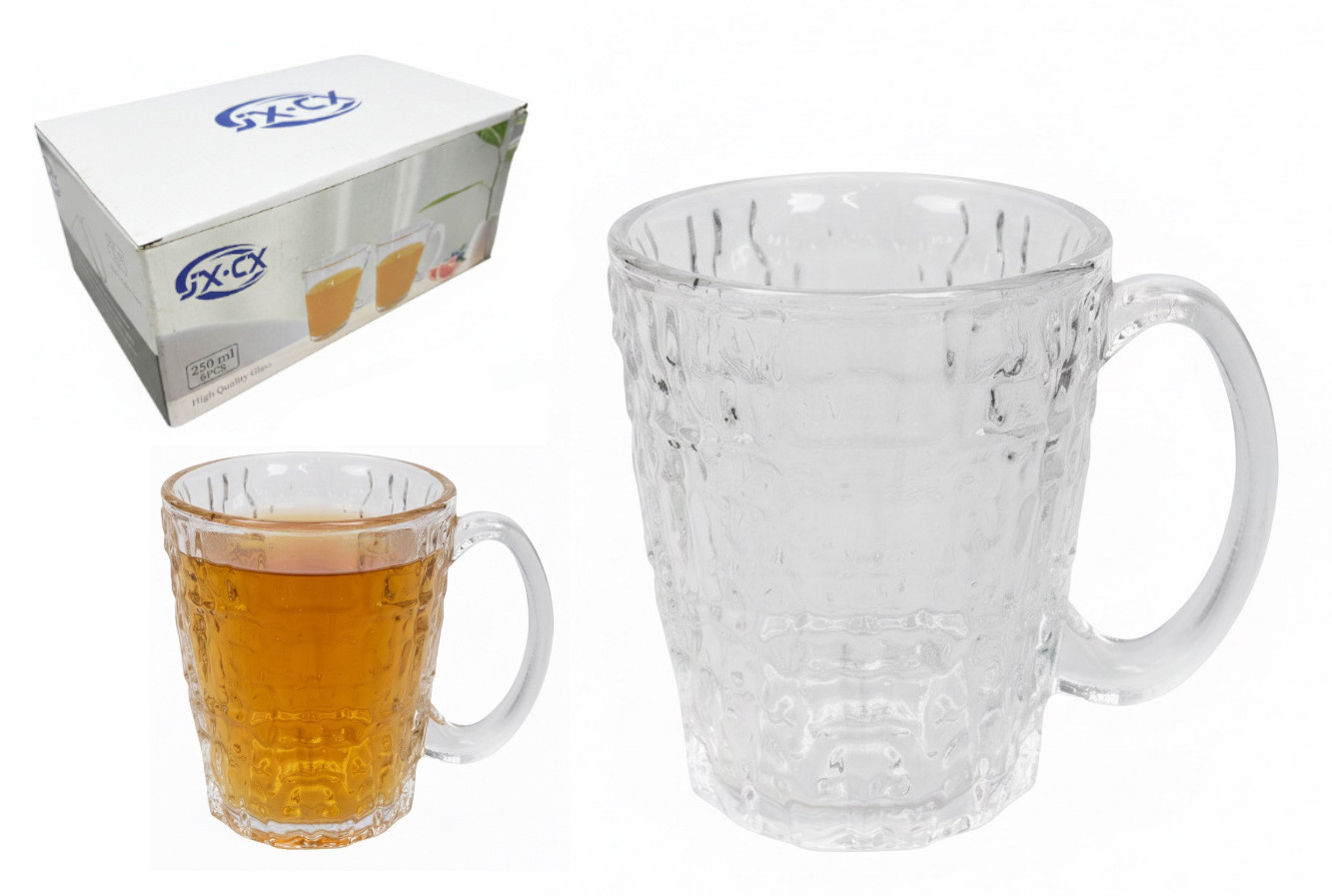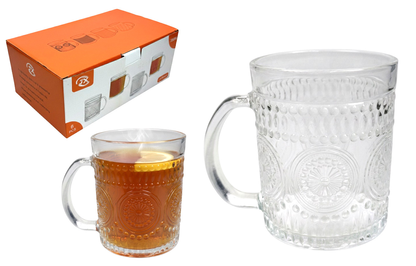 Kubek szklanka z uchem młotkowana 10x8 cm 250 ml kpl. 6 szt