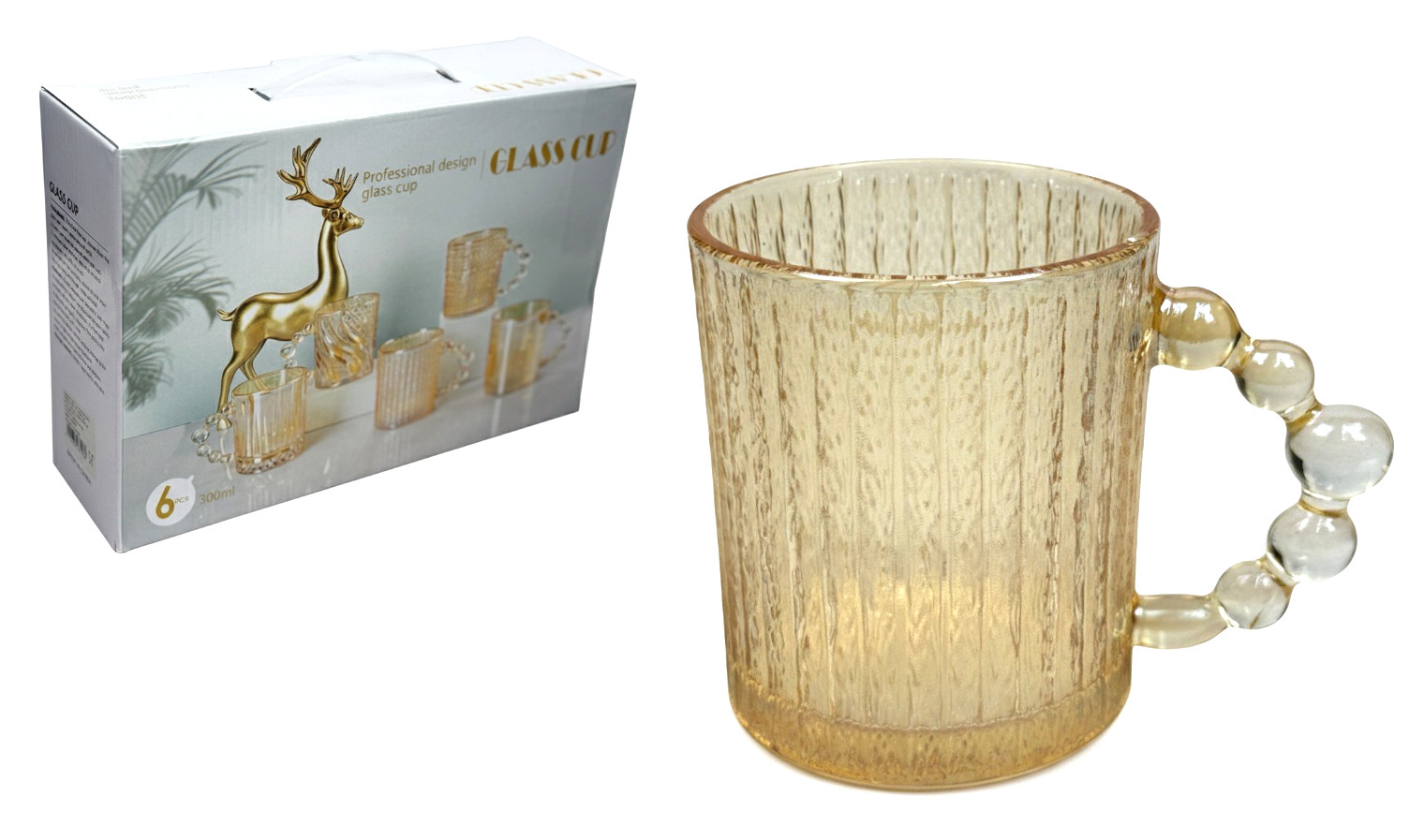 Kubek szklanka z uchem w kolorze BURSZTYNU 9x8 cm  300 ml  kpl. 6 szt