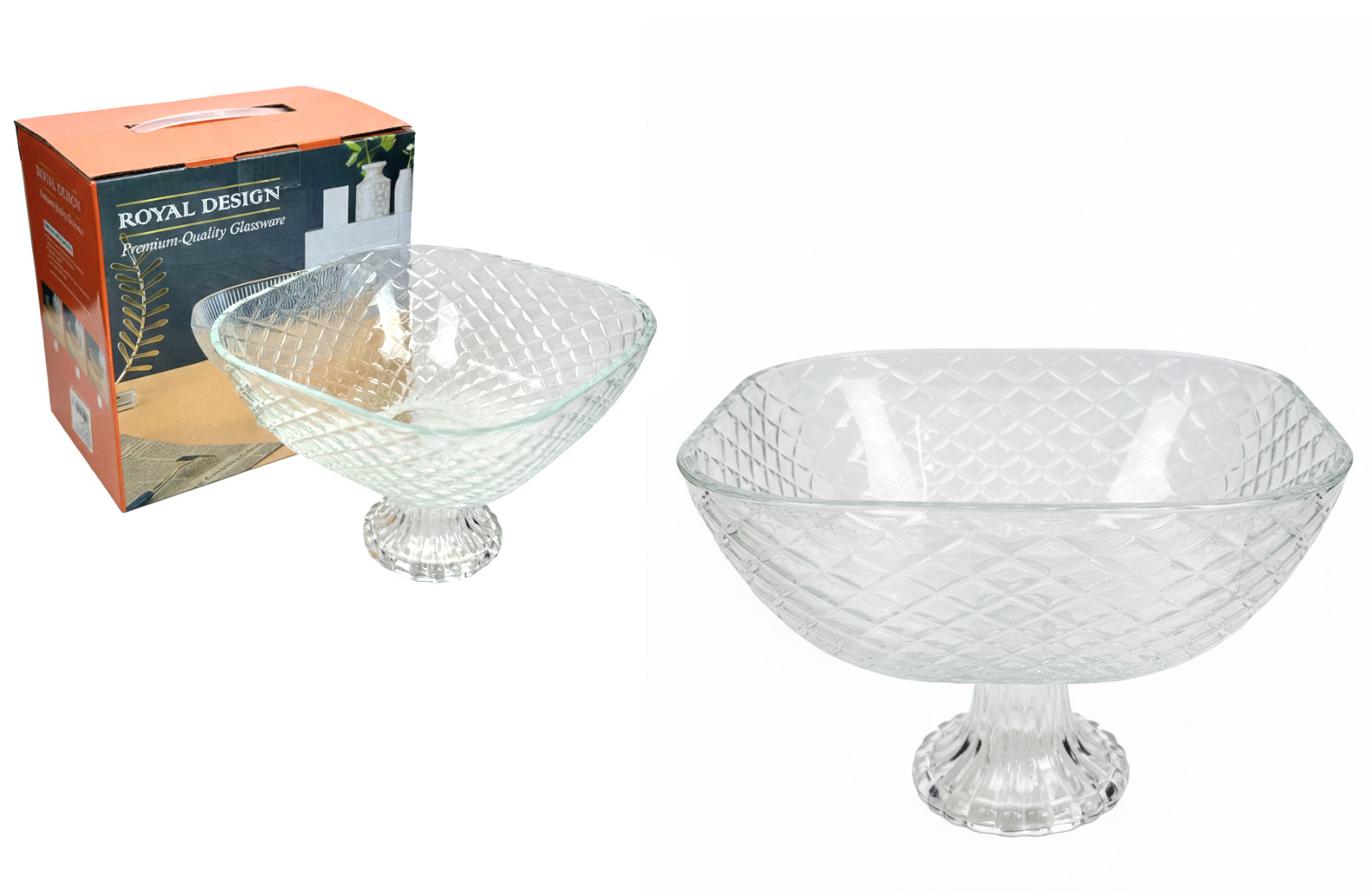 Miska szklana na nóżce 18x18 cm ROMBY
