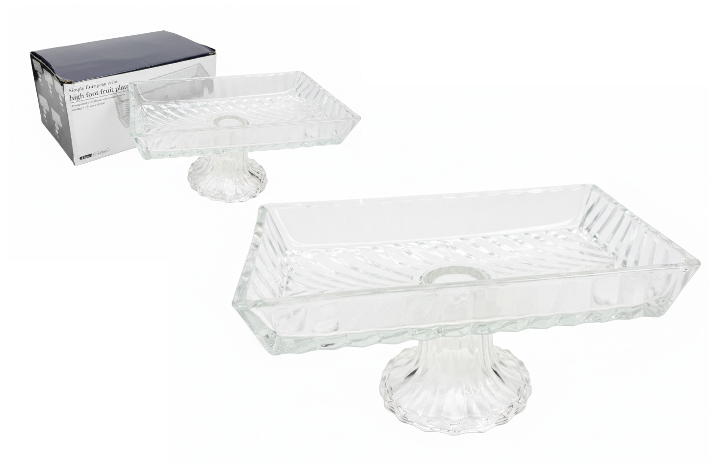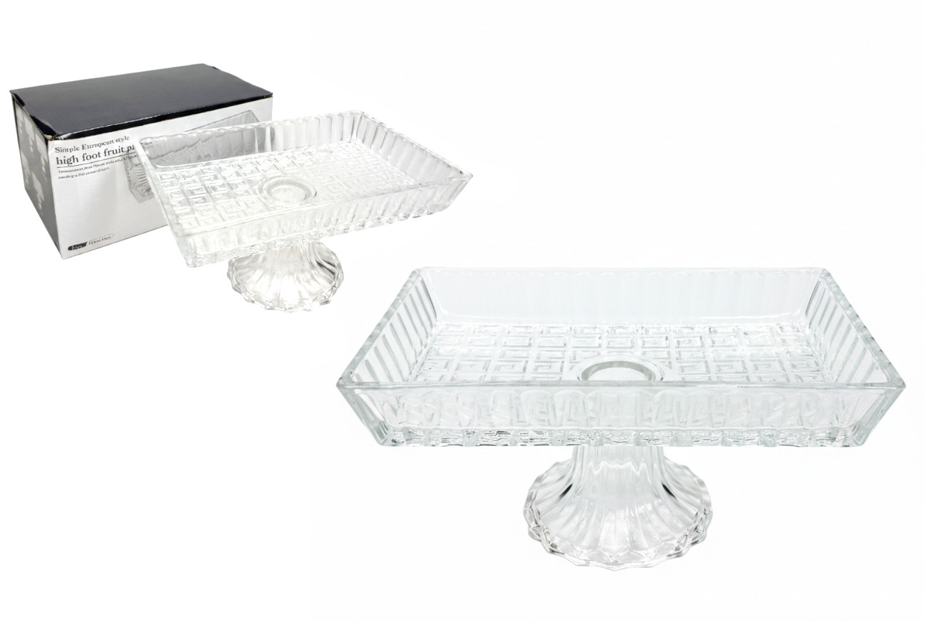 Patera szklana PROSTOKĄTNA na nóżce 20x13x9,5 cm WZÓR EGIPT