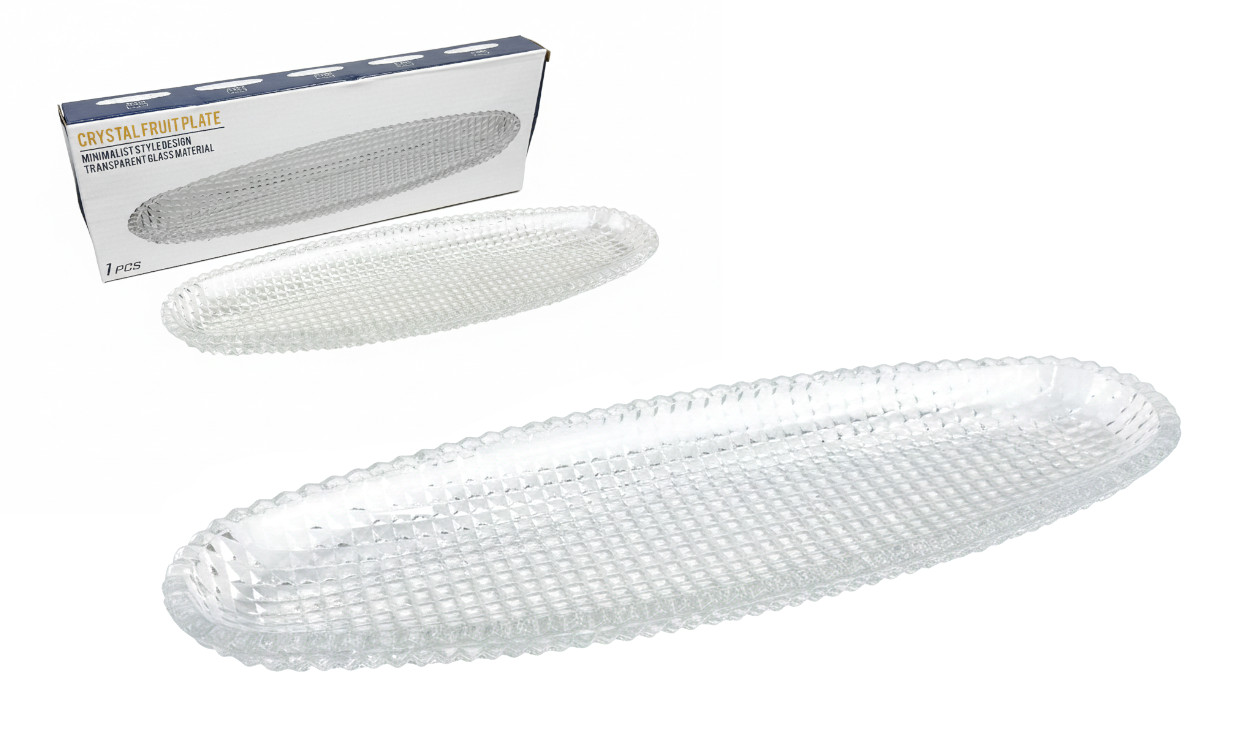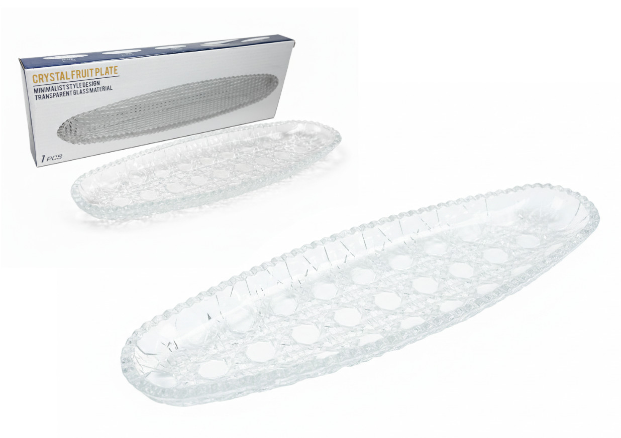 Półmisek szklany podłużny OWALNY 31x10x2,5 cm wzór PRZEPLATANY