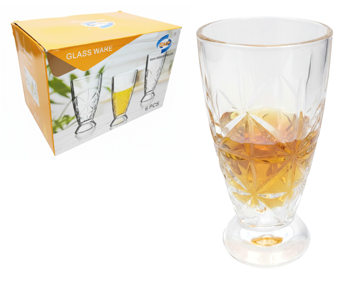 Szklanka wysoka na nóżce wzór gwiazdki 13x7 cm  - kpl. 6 szt