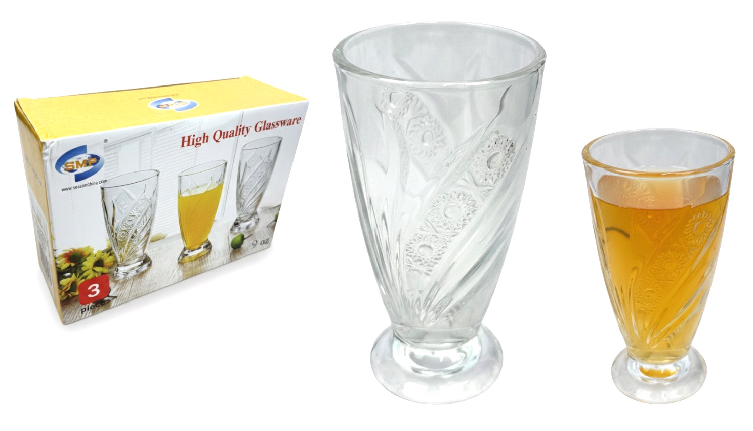 Szklanka wysoka na nóżce wzór kwiatki 13x7 cm 240 ml - kpl. 3 szt