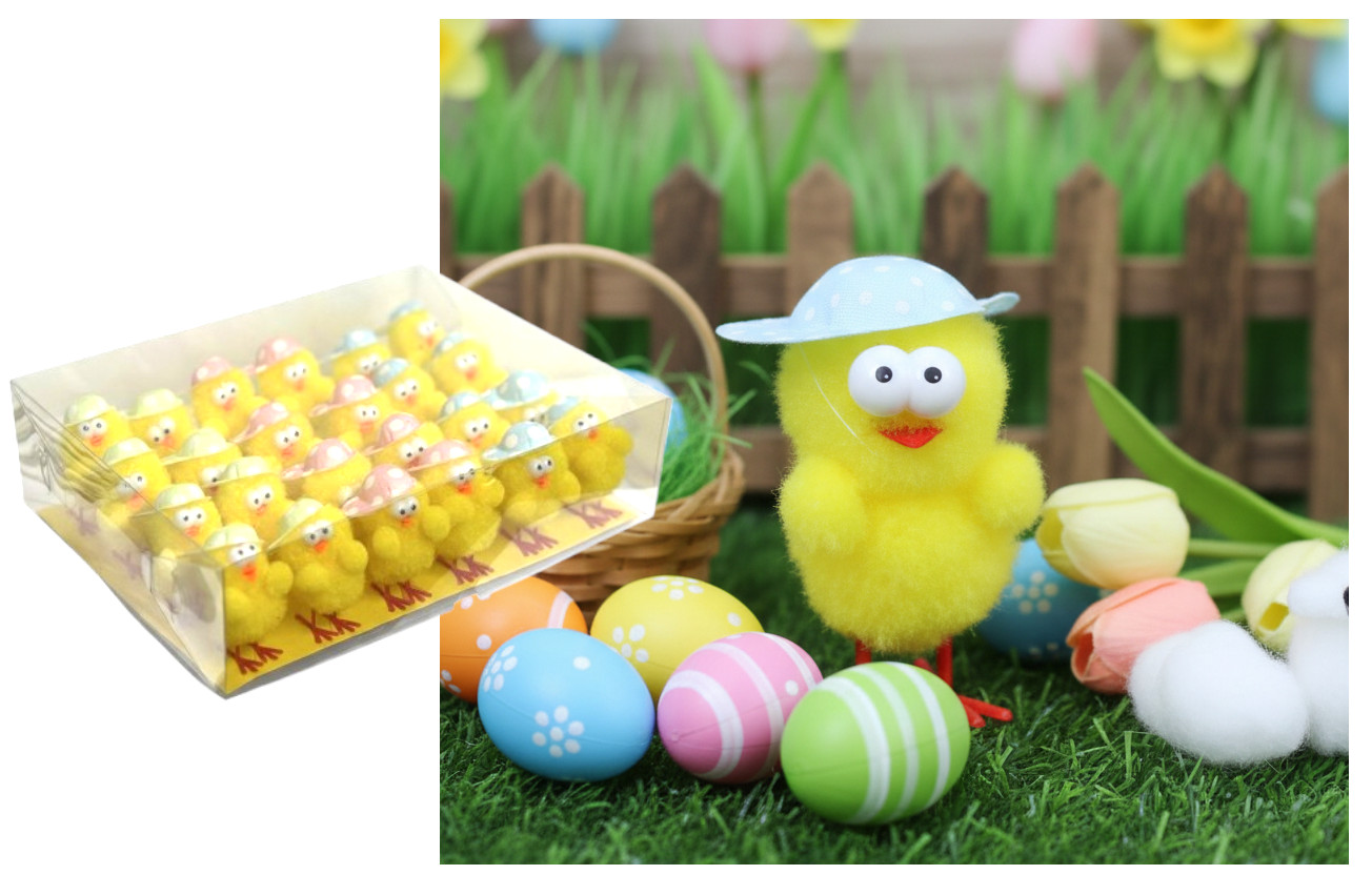 Kurczaczek w czapce z daszkiem dekoracja wielkanocna 5,5 cm - tw.sztuczne - 1 szt