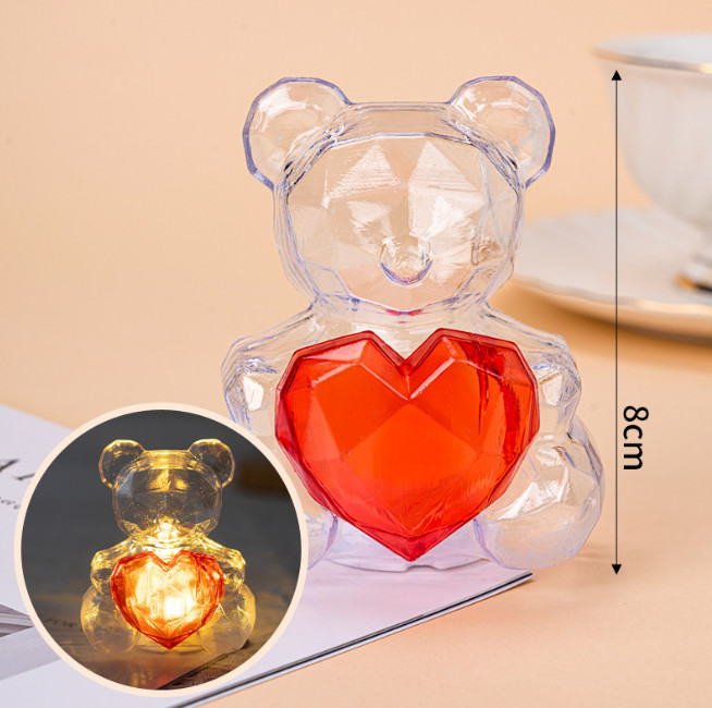 Miś, niedźwiadek 8x7 cm LED TRANSPARENTNY z czerwonym sercem