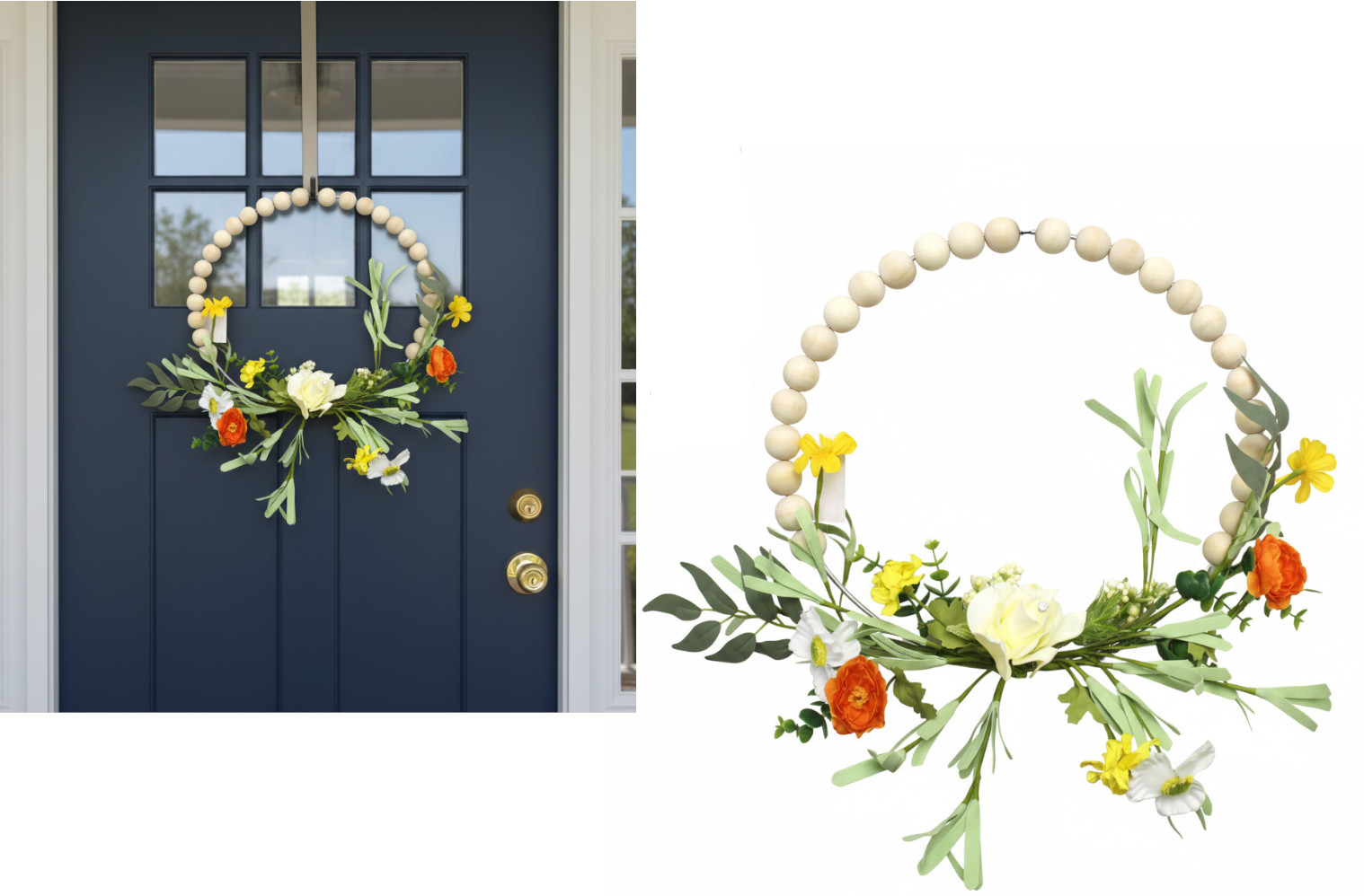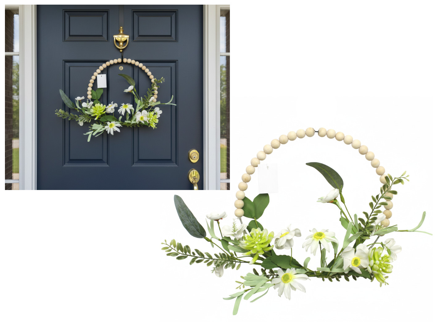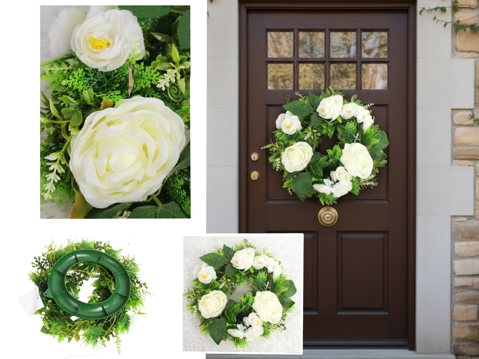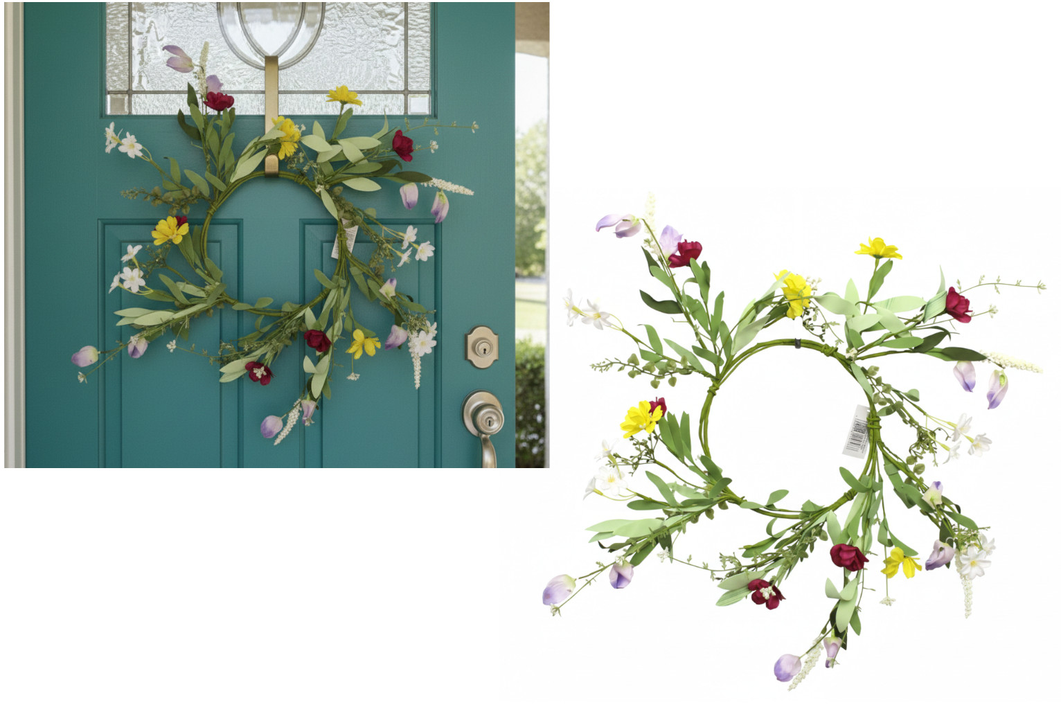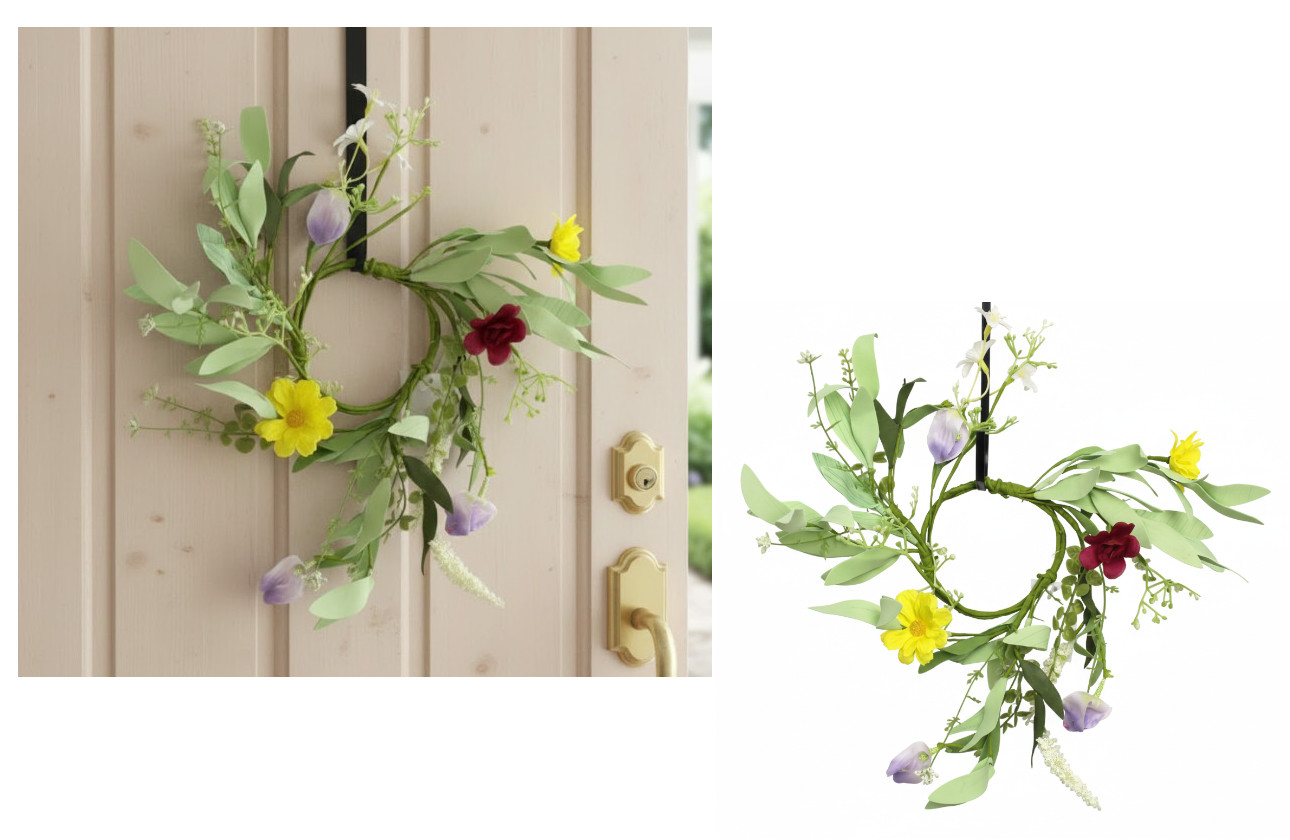 Wianek WIOSENNE KWATY z piankowymi listkami 33 cm