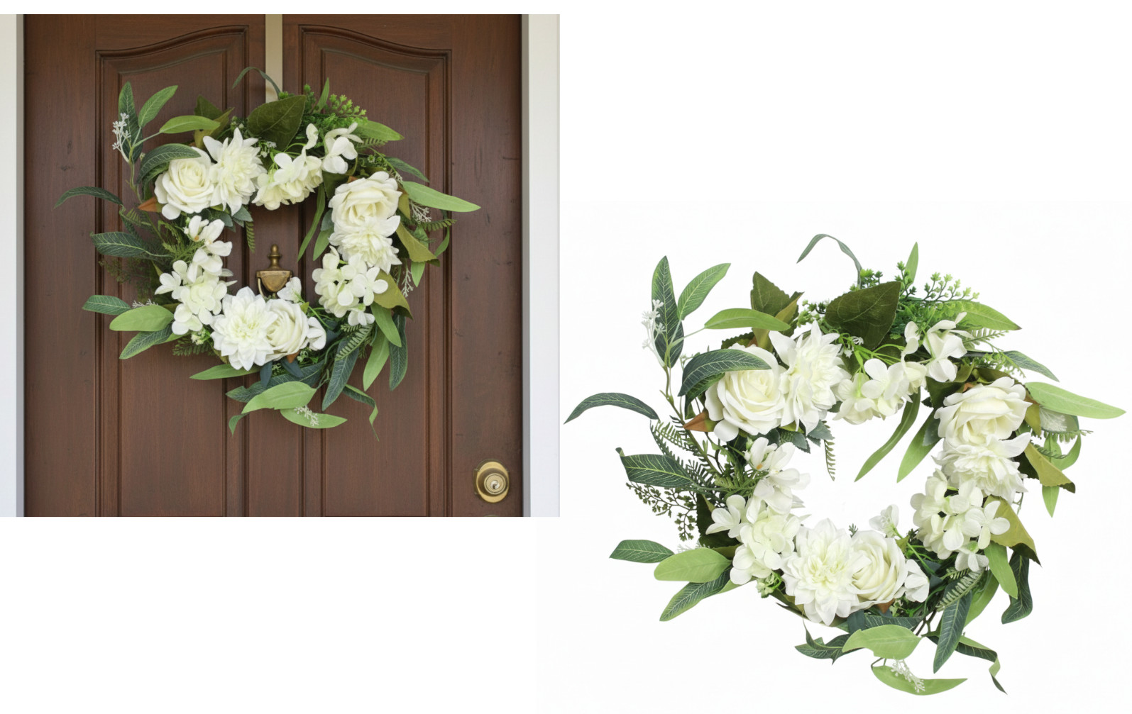 Wieniec, wianek mieszany z RÓŻA, DALIA, HORTENSJA wys. 50 cm BIAŁY