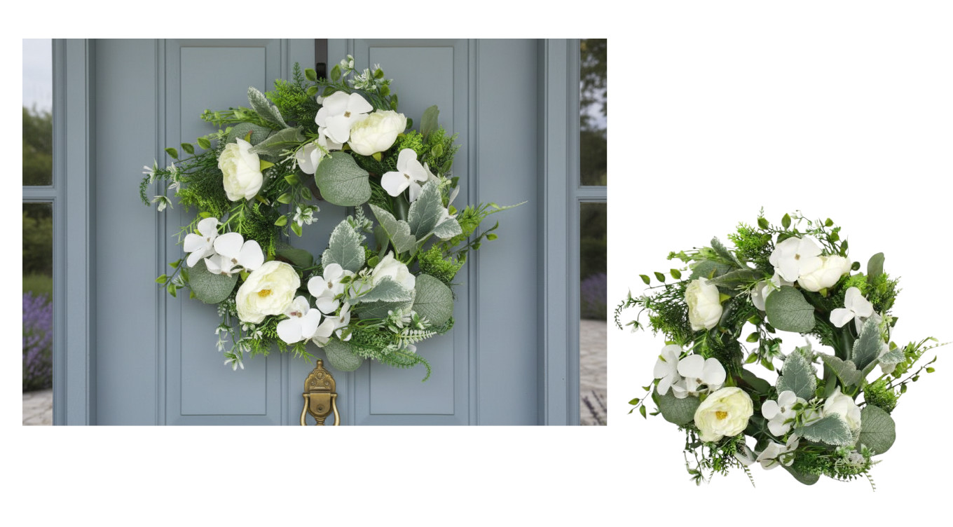 Wianek WIOSENNE KWATY z piankowymi listkami 23 cm