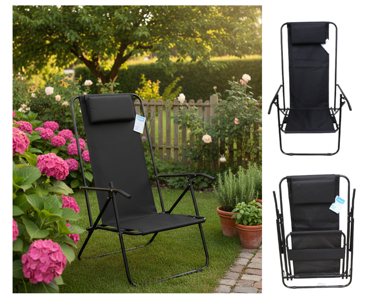 Krzesło, fotel składany 87x51x38 cm CZARNY