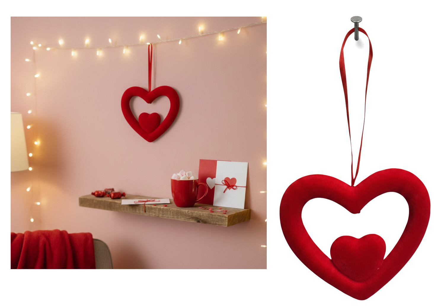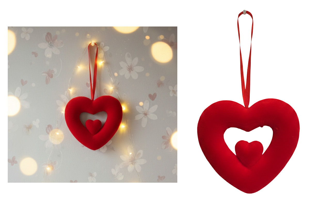 Zawieszka, ozdoba serce styropianowe flokowane 13 cm CZERWONE
