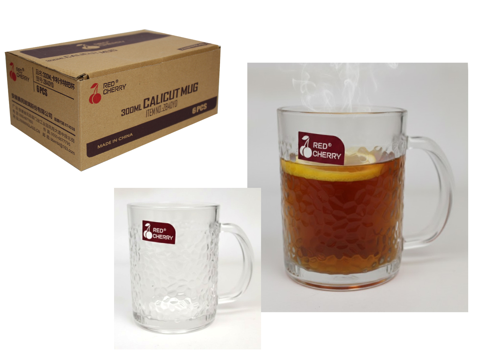 Kubek szklanka 300 ml z uchem, tłoczony wzór KROPKI 10x8 cm - 1 szt