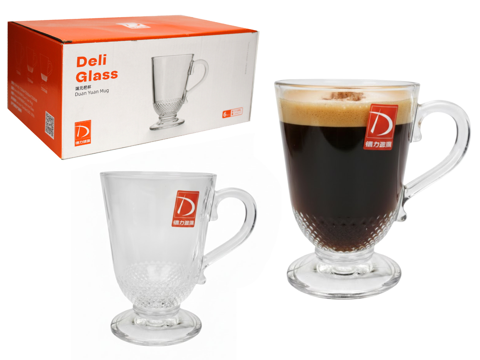 Kubek szklanka 300 ml z uchem, na nóżce, tłoczony wzór 10x8,5 cm - 1 szt