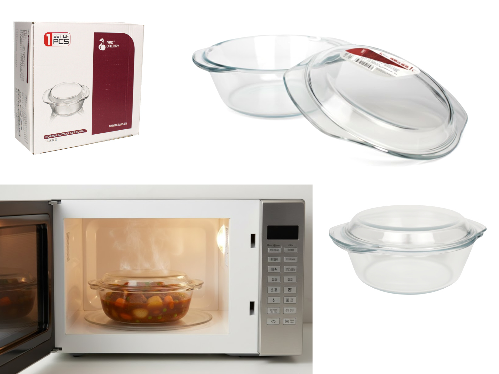 Naczynie żaroodporne 1L okrągłe z pokrywką 20x7 cm