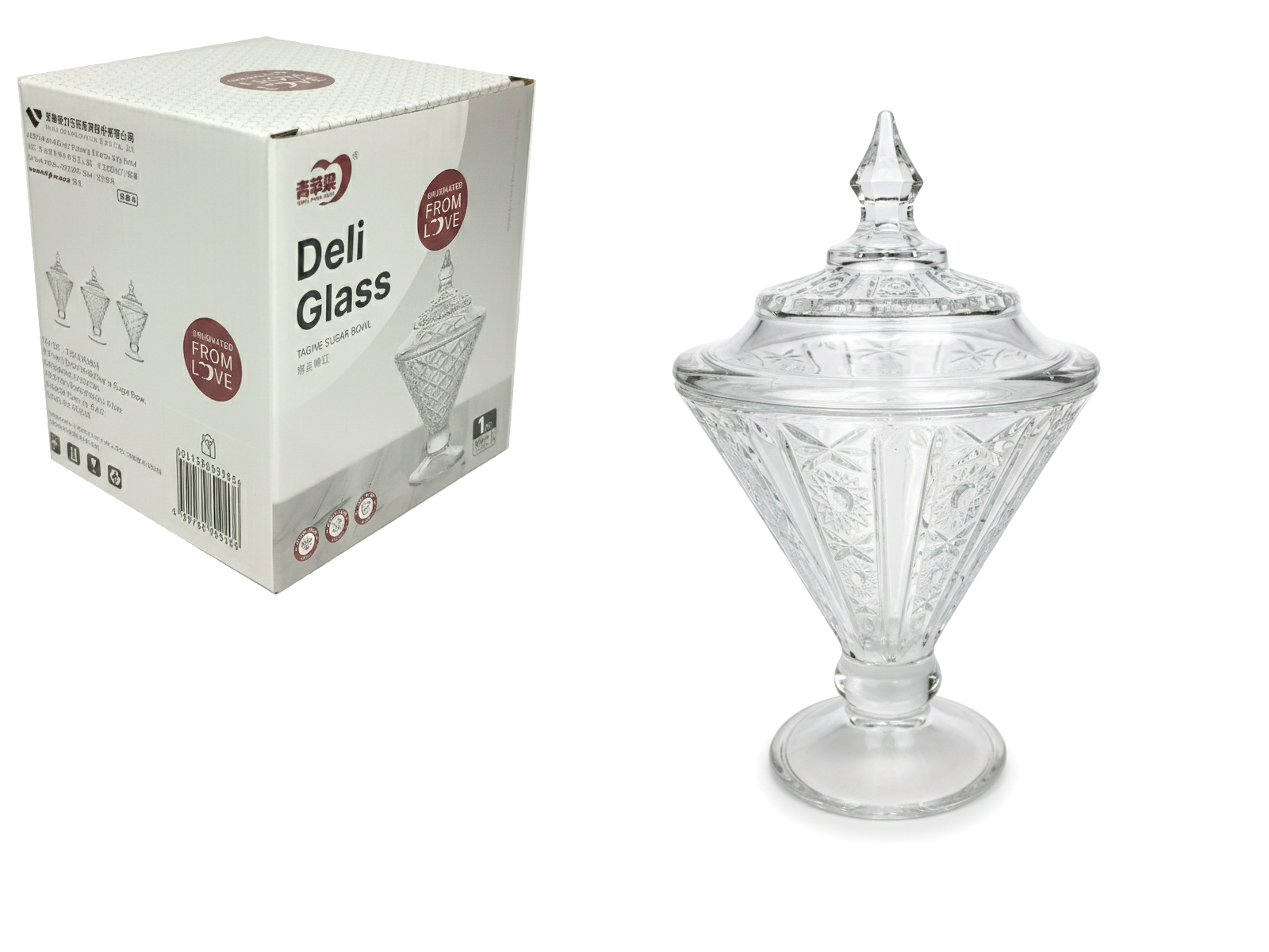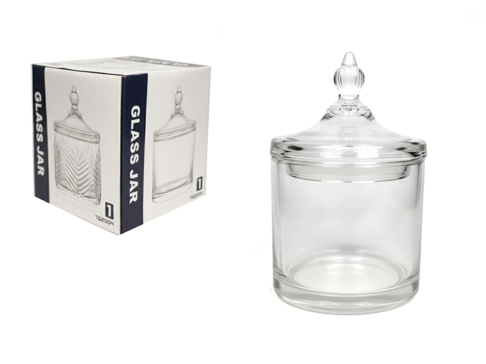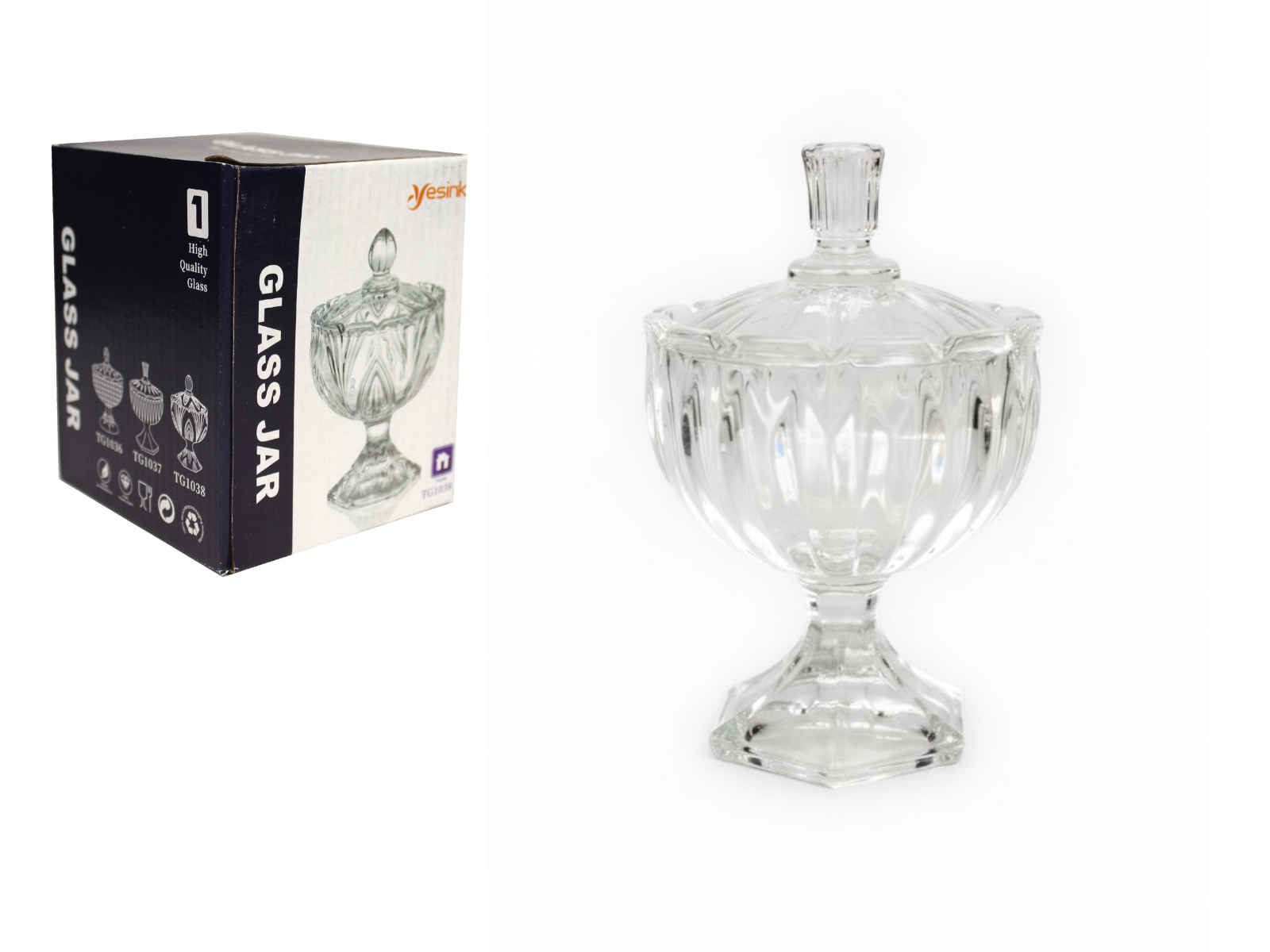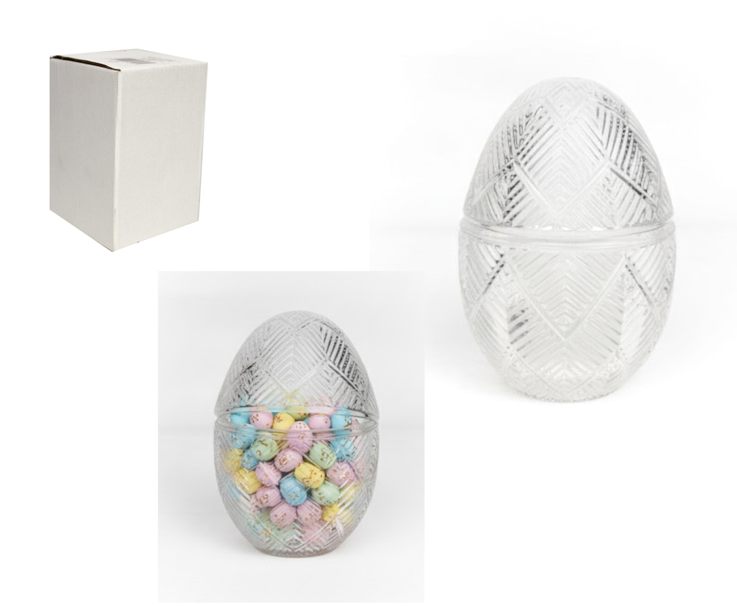 Pojemnik szklany, bombonierka, cukiernica z pokrywką JAJO, tłoczony wzór JODEŁKA 12,5x8 cm