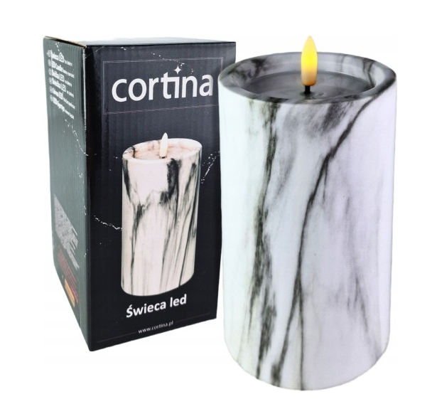 Świeca LED 10x7,5 cm EFEKT MARMURU ze skaczącym płomieniem SZARA - 1 szt