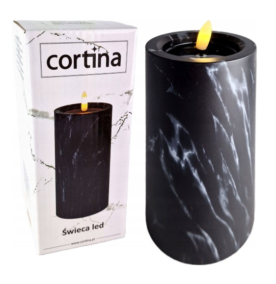 Świeca LED 10x7,5 cm EFEKT MARMURU ze skaczącym płomieniem CZARNA - 1 szt