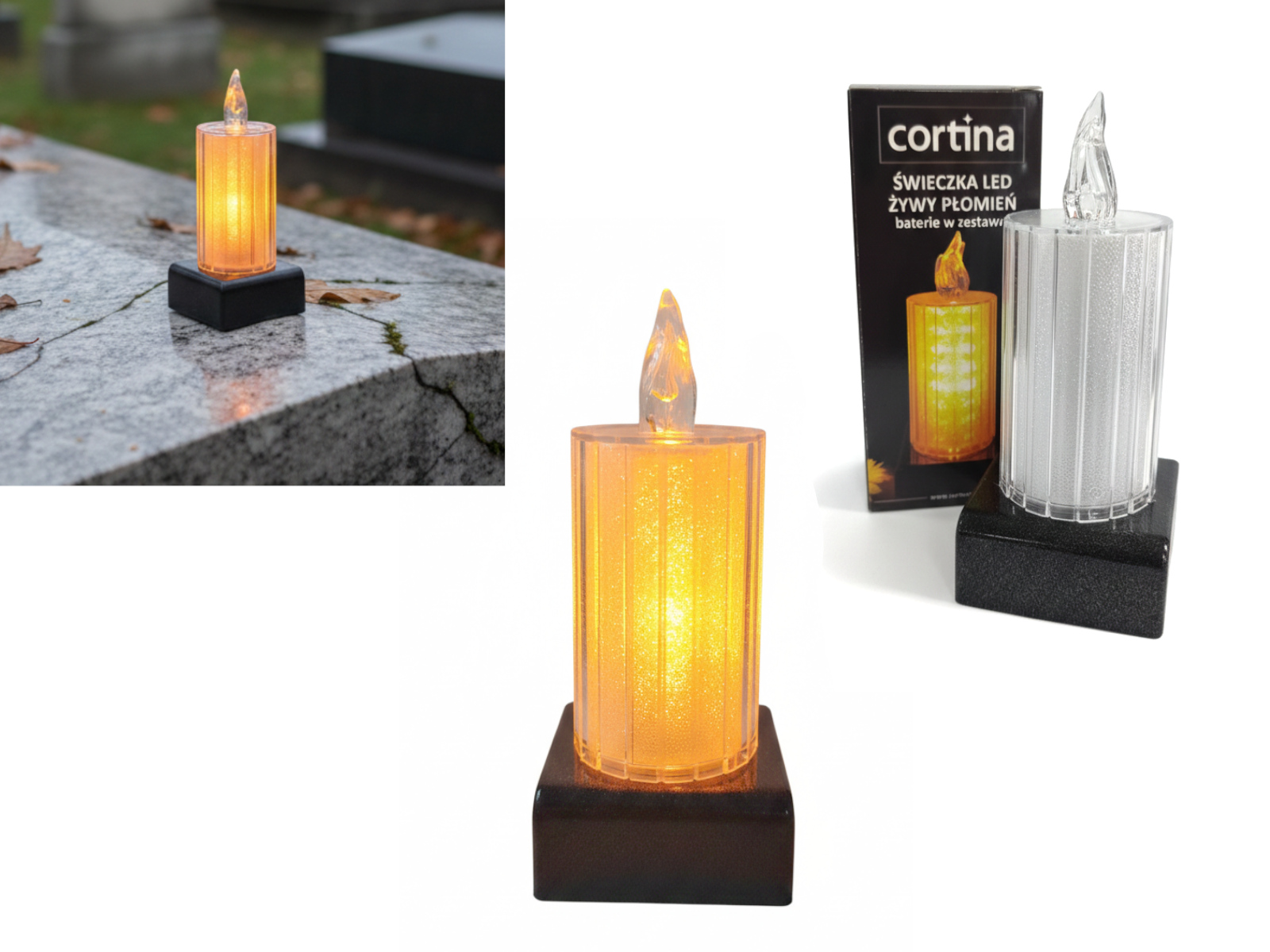 Wkład, świeca, znicz LED PŁOMIEŃ XL, żywy płomień z bateriami 15,x6,5 cm- 1 szt