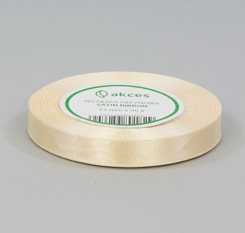 Wstążka satyna KREMOWA 12mm x 33m - 1 szt