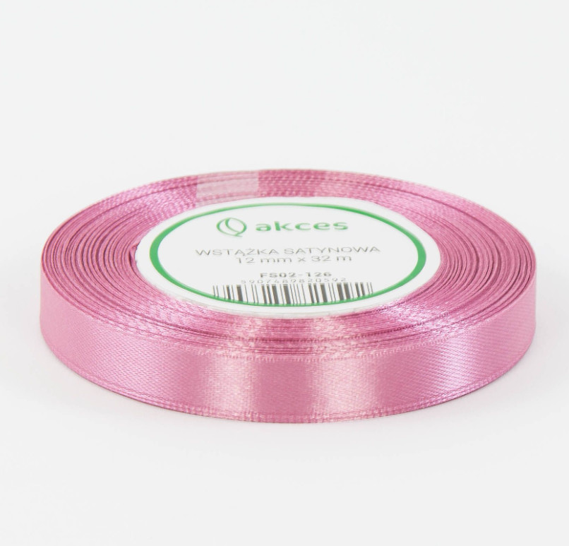 Wstążka satyna RÓŻOWY brudny 12mm x 33m - 1 szt