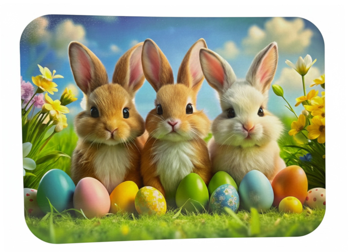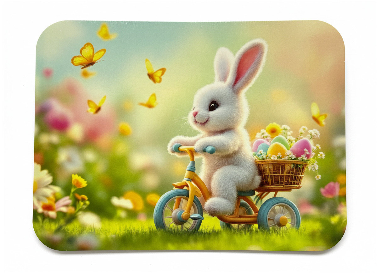 Mata stołowa 40x30 cm ZAJĄCZEK NA ROWERZE Z KOSZYCZKIEM PISANEK, MOTYLE