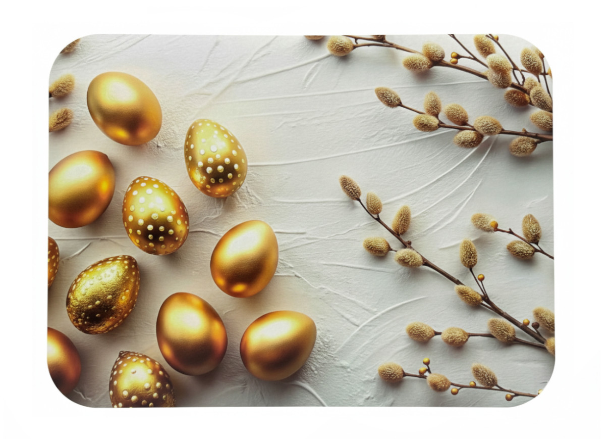 Mata stołowa 40x30 cm ZŁOTE PISANKI, BAZIE NA SZARYM TLE
