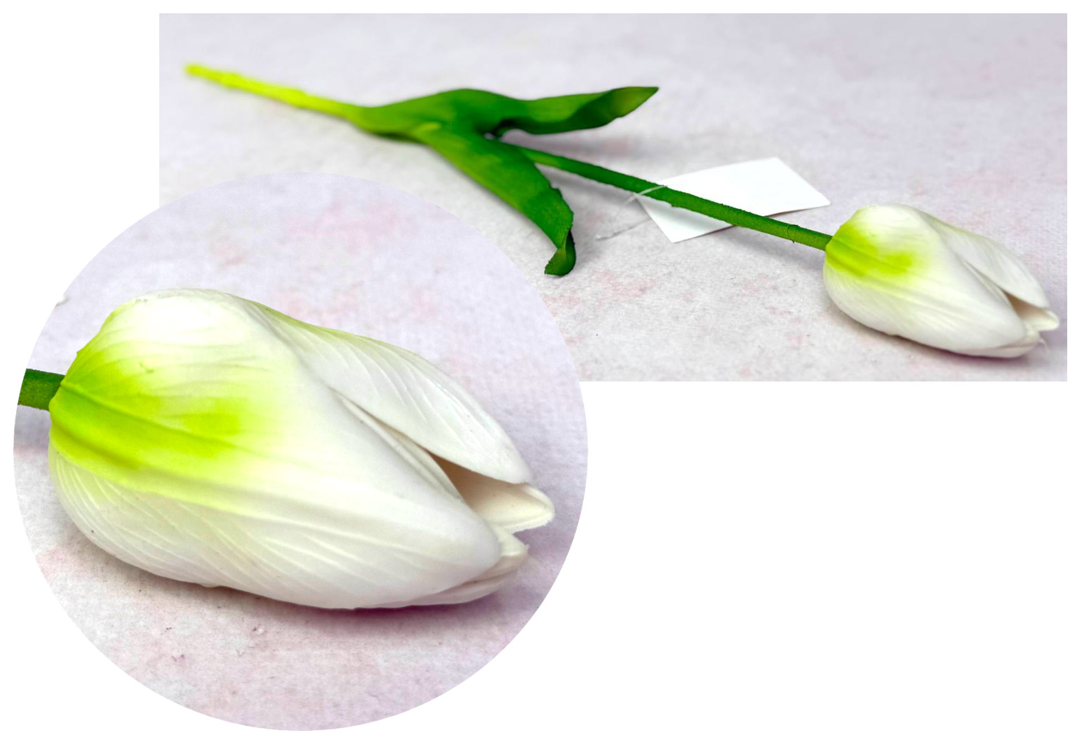 Kwiat TULIPAN gumowy wys. 31 cm (kwiat 4,5x2 cm) BIAŁO - ZIELONY