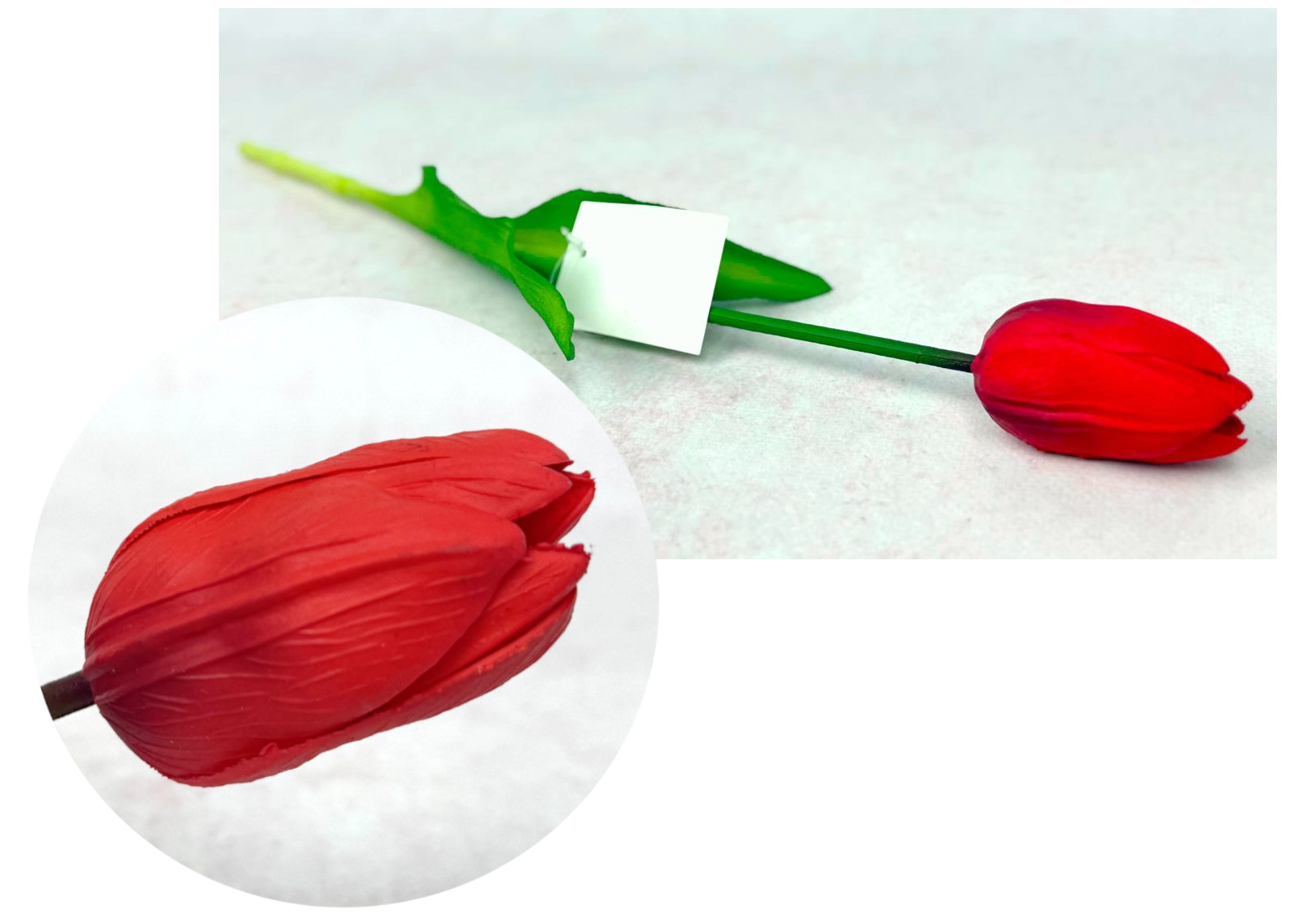 Kwiat TULIPAN gumowy wys. 42 cm (kwiat 6x4 cm) CZERWONY