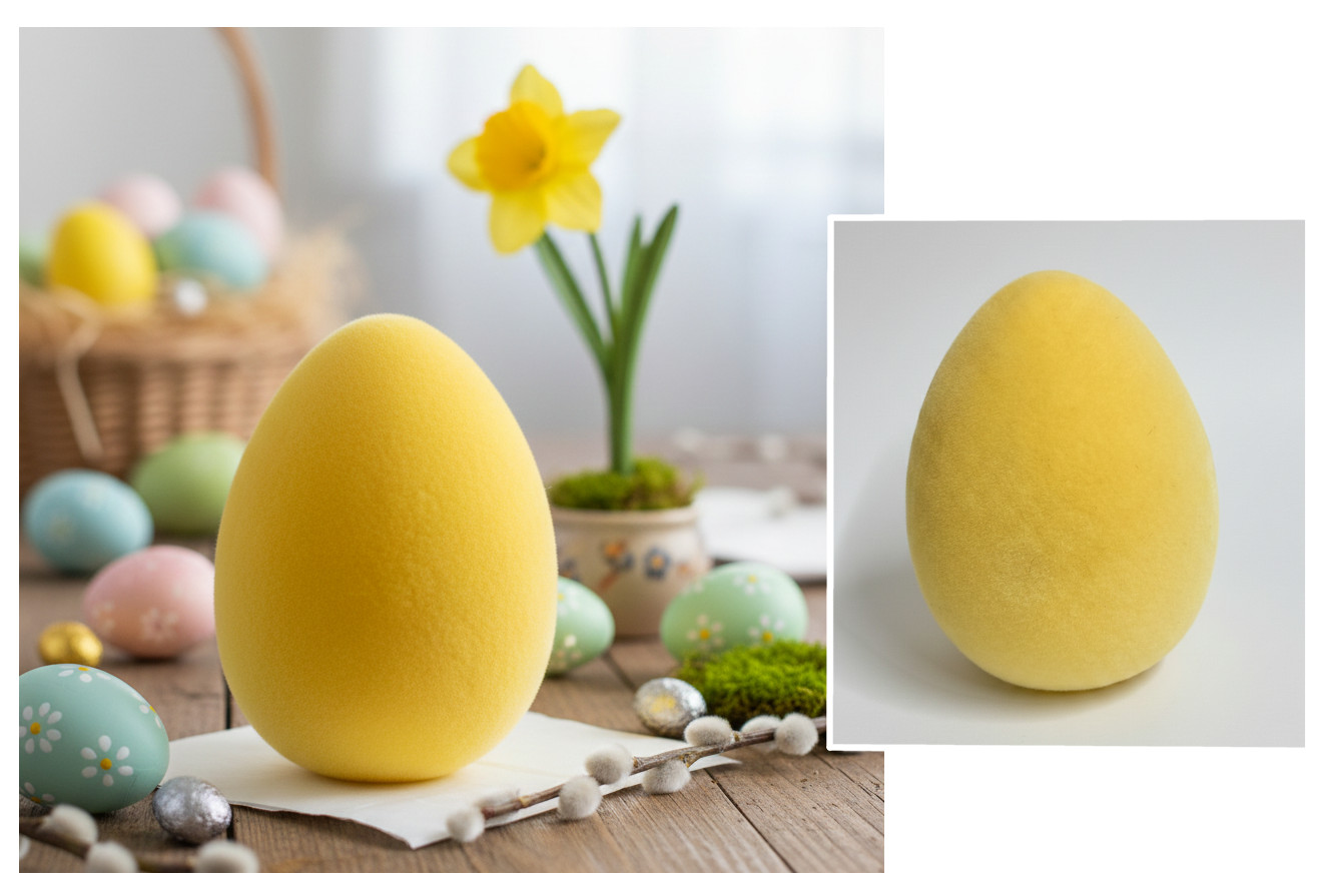 Dekoracja wielkanocna styropianowa JAJKO flokowane 9,5x6,5 cm ŻÓŁTE