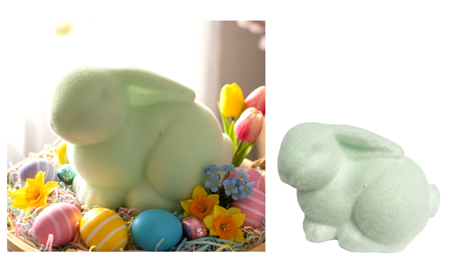 Dekoracja wielkanocna styropianowa ZAJĄC flokowany 15x12x9 cm JASNO ZIELONY