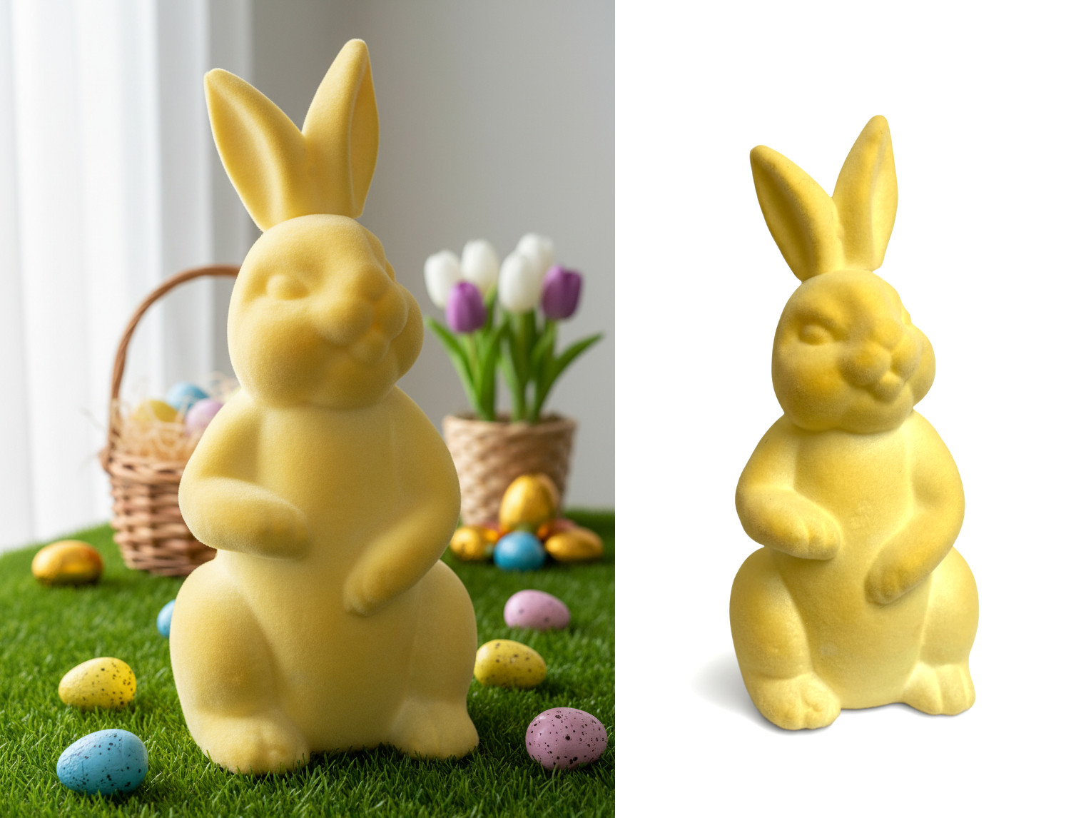 Dekoracja wielkanocna styropianowa ZAJĄC flokowany 35x15x15 cm ŻÓŁTY