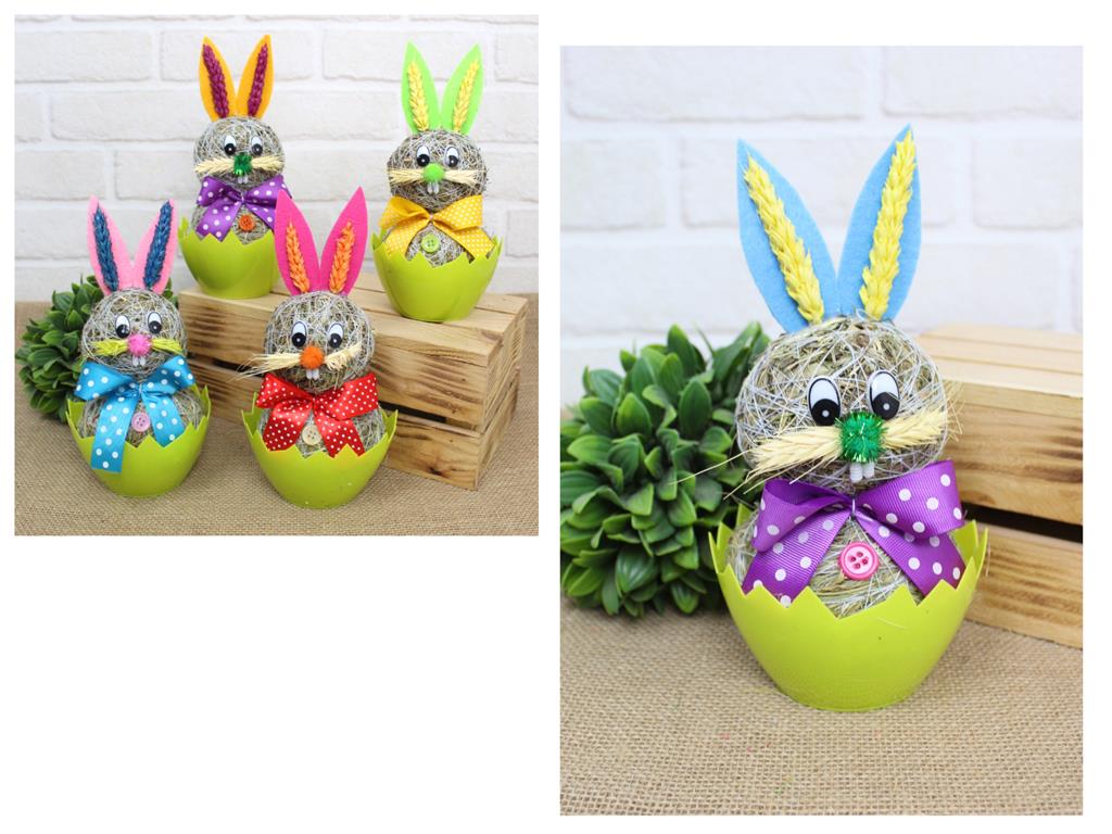 Zając z siana w skorupce, filcowe uszy, kokarda w kropki 25 cm