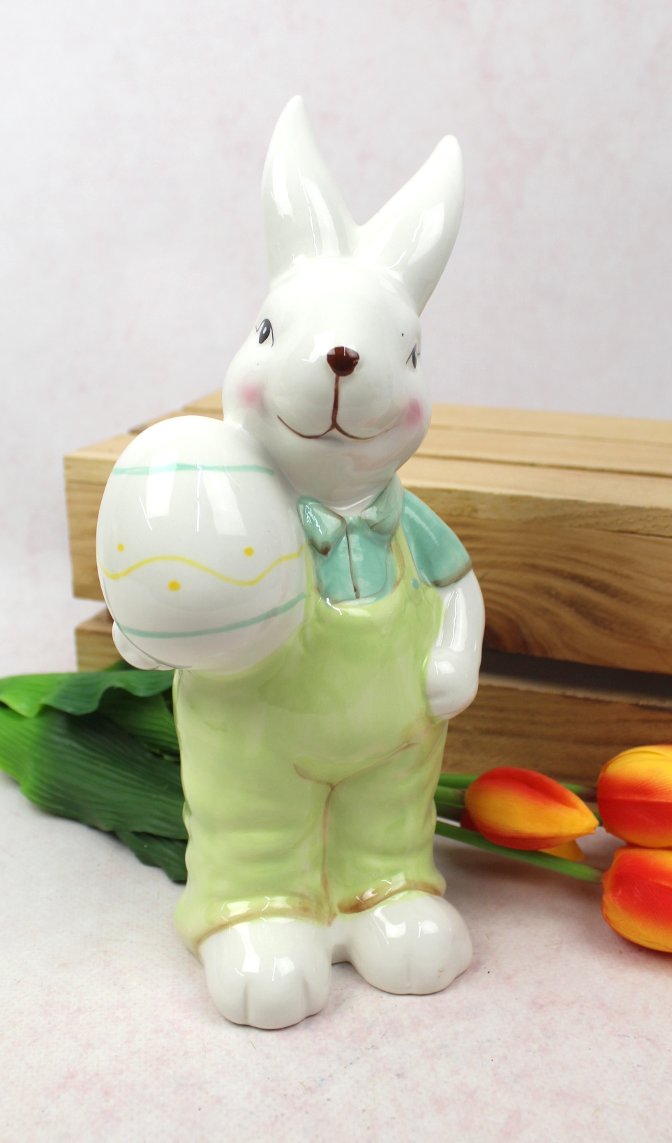Figurka ceramiczna PAN KRÓLIK Z PISANKĄ 24x10x8 cm