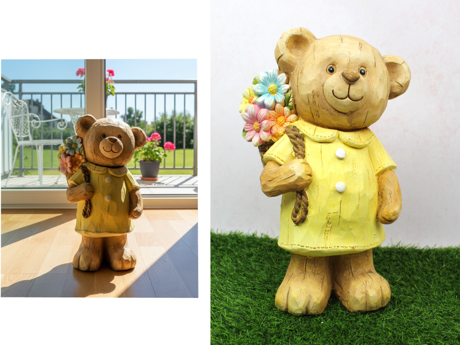 Figurka ceramiczna MIŚ Z KWIATAMI w koszyczku 36x23x10 cm