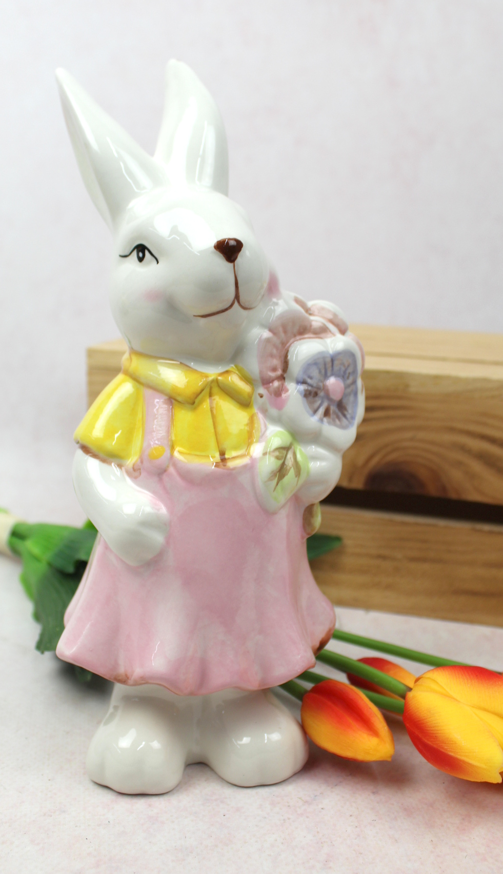 Figurka ceramiczna PANI KRÓLIK Z BUKIETEM 24x10x8 cm