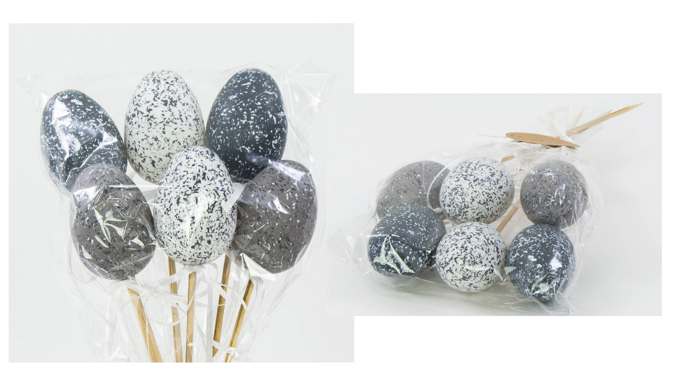 Jajko plastikowe (6 cm) na piku szaro-białe 26 cm - kpl 6 szt
