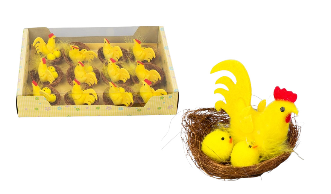 Kurczak kogut z kurczakami w gnieździe 6 cm - 1 szt
