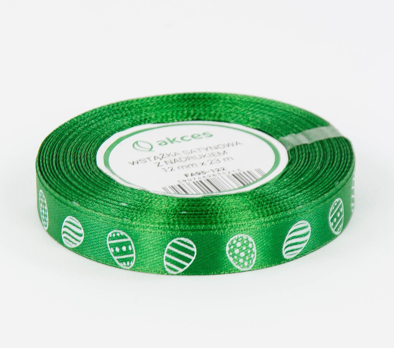 Wstążka satynowa nadruk 12 mm x 23m PISANKI ZIELONA