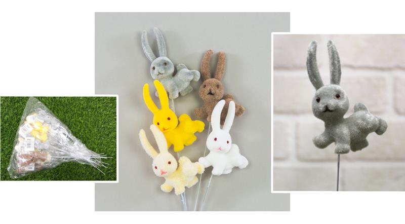 Zając flokowany 7 cm pik 19 cm mix kolor - 1 szt