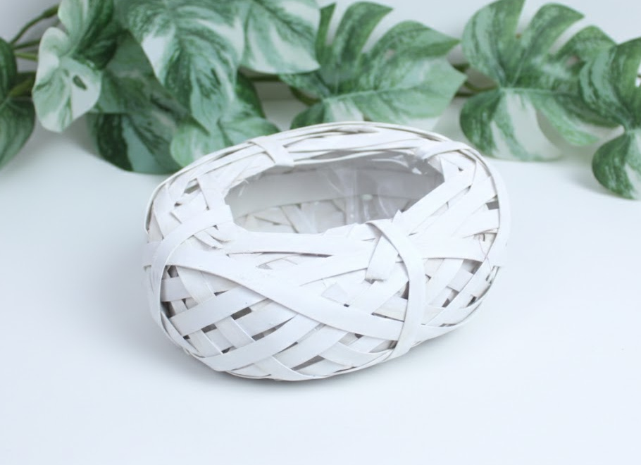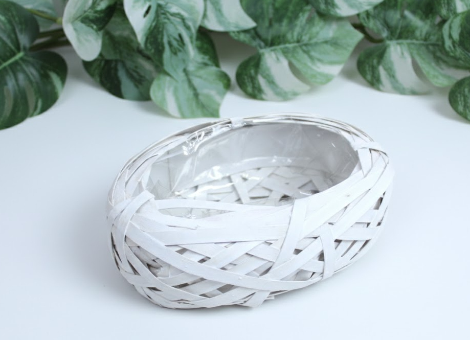 Osłonka wiklinowa, rattanowa z plastikowym wkłasem GNIAZDO OWAL 19x6 cm - BIAŁA