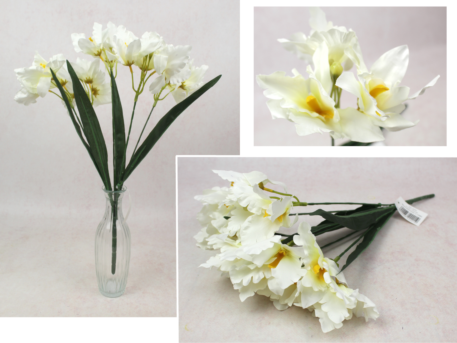 Bukiet ŻONKIL wys. 42 cm, 7 łodyg (21 kwiatów 6x3 cm) BIAŁY z żółtym środkiem