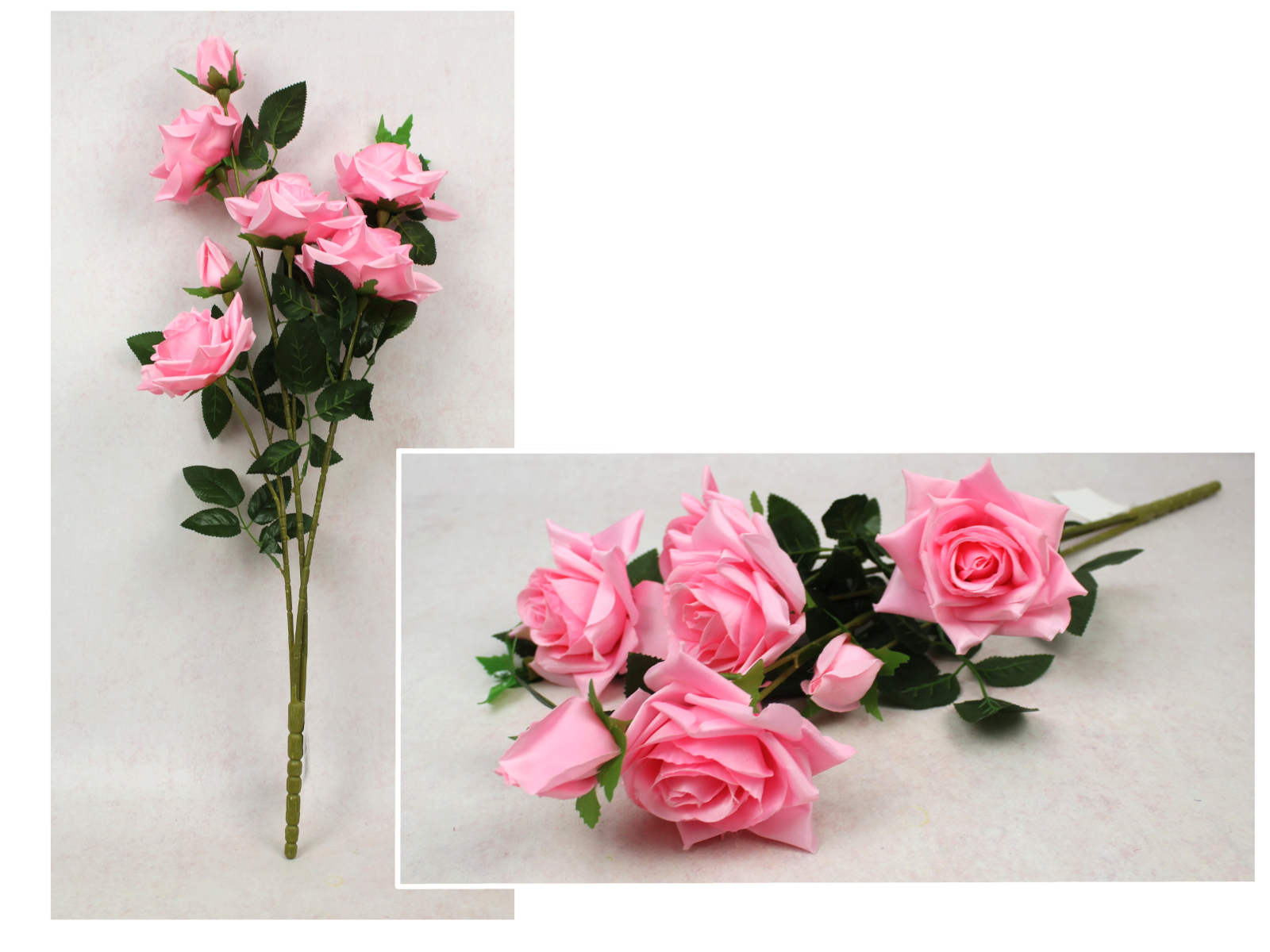 Bukiet RÓŻA wys. 70 cm, 3 łodygi (5 kwiatów 12x5 cm, 2 pąki) różowa