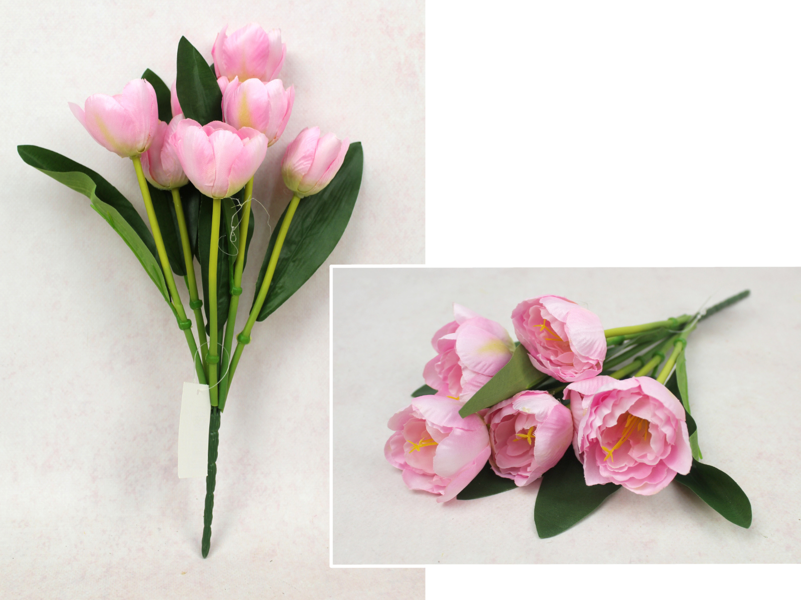 Bukiet TULIPAN wys. 37 cm, 7 łodyg (7 kwiatów 6x4 cm) RÓŻOWY jasny